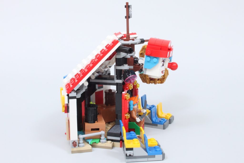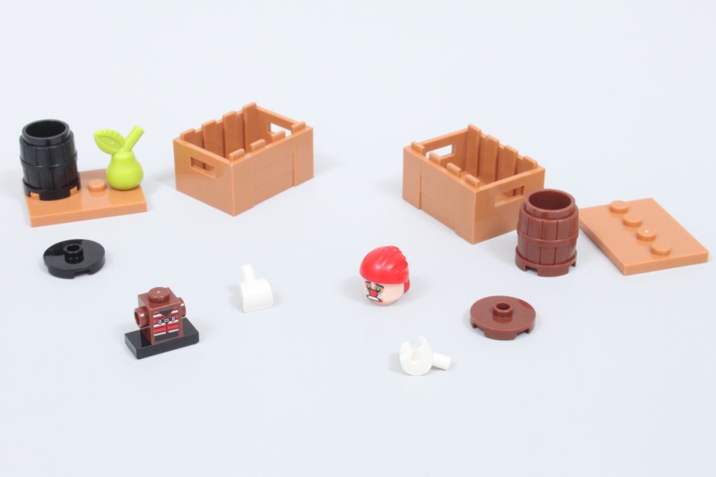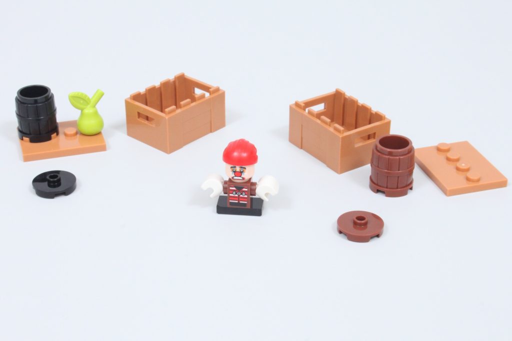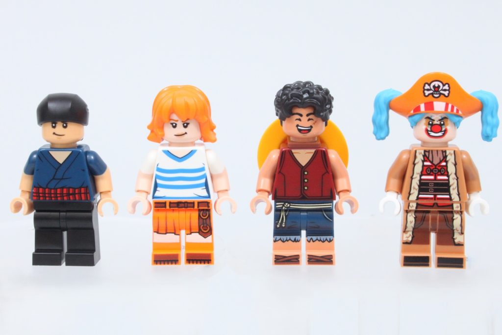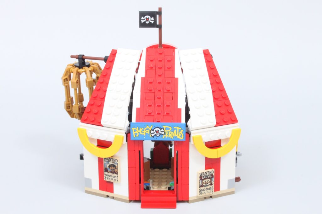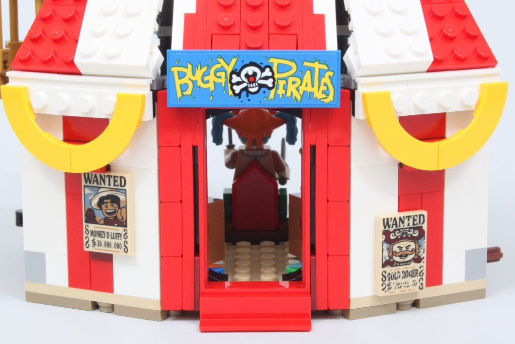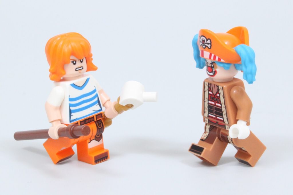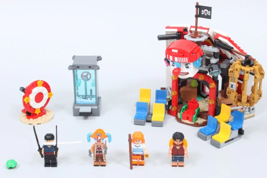 Queste scatole nascondono elementi aggiuntivi per quegli arti separati, poiché le minifigure non possono rimuovere le braccia senza rischiare di danneggiarle. Togliendo la testa alla minifigure di Buggy, è possibile creare una figura molto più piccola del pirata clown, simile a quella della serie live-action. È un'ottima funzionalità, ma con un adesivo purtroppo piccolo e difficile da applicare.