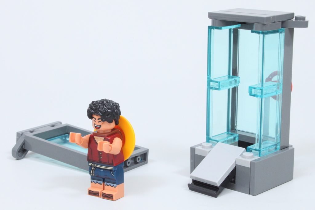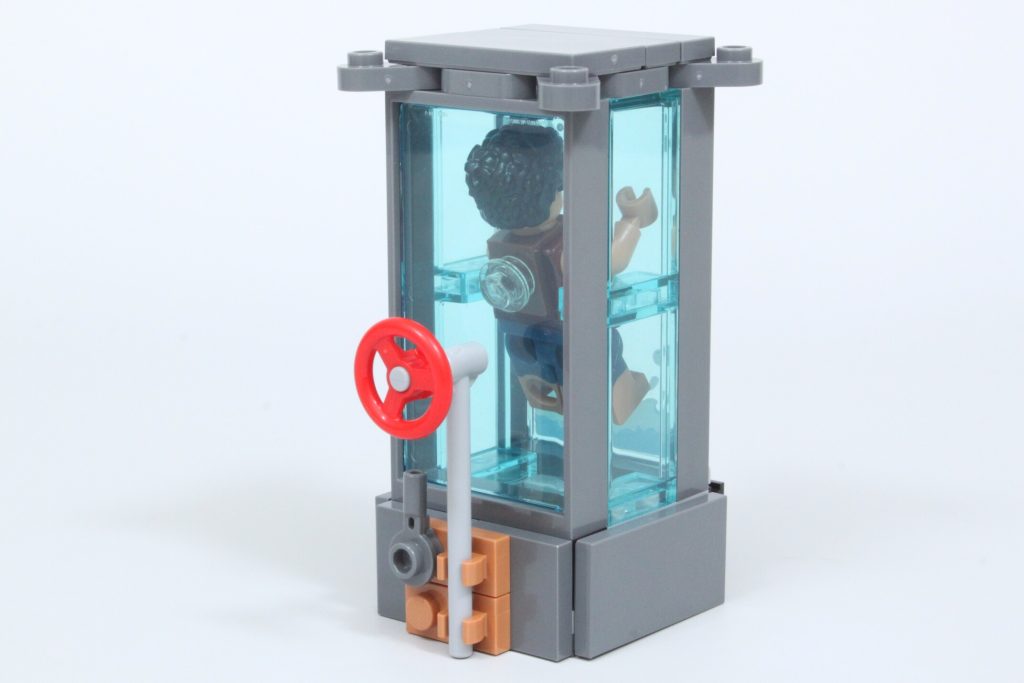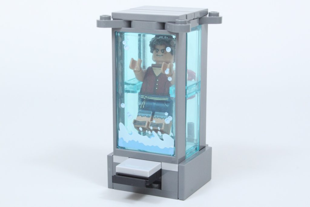 La camera in cui è rinchiuso Rufy sfrutta al meglio un adesivo per spruzzare acqua e bolle, con spazio sufficiente per contenere una minifigure. In particolare, i designer hanno sfruttato le piccole piattaforme sui finestrini laterali create utilizzando questi due elementi corti per consentire a una minifigure di rimanere sospesa nella camera piena d'acqua, anziché appoggiarsi sul fondo. L'effetto funziona bene e non impedisce la funzionalità di far saltare la porta del serbatoio e liberare Rufy.