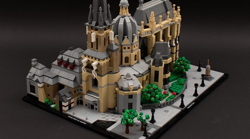 “Una cattedrale ad Aquisgrana, in Germania, originariamente iniziata da Carlo Magno come suo palazzo imperiale. Da questo periodo provengono la base a 16 lati dell'edificio e la cupola a 8 lati sopra. Nel tempo, sono stati aggiunti la torre, il coro e numerose cappelle attorno alla sua circonferenza. In particolare, il coro è di grande importanza architettonica. È stata la prima aggiunta dalla Germania al patrimonio mondiale dell'UNESCO. Grazie alla sua abbondanza di reliquie, è, dopo la Cupola della Roccia (Gerusalemme), Santiago de Compostela (Spagna) e la Basilica di San Pietro (Vaticano), il quarto luogo di pellegrinaggio più importante della cristianità.”