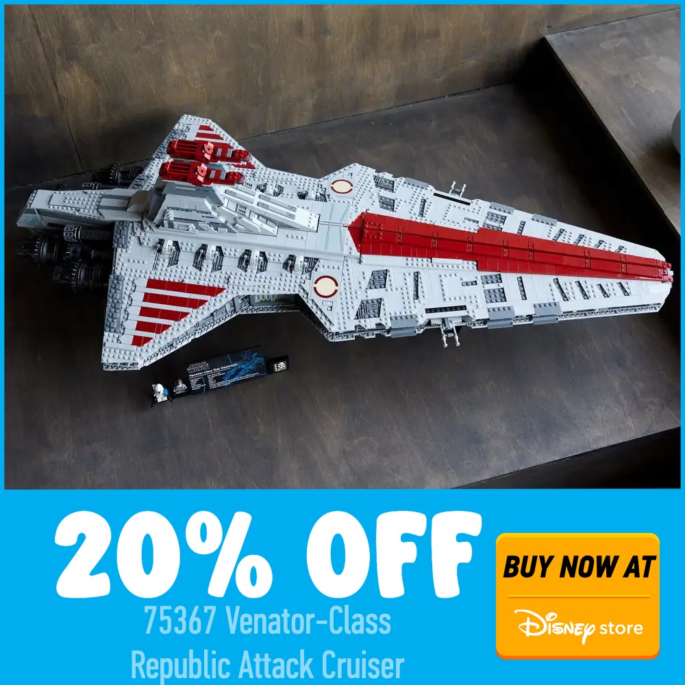 Disney Negozio ha lanciato una nuova vendita fino a Sconto del 20% su LEGO selezionati set nel Regno Unito e in Europa, compresi i set nuovi e quelli in disuso. Gli sconti maggiori si possono ottenere su alcuni dei set più grandi venduti dal rivenditore, con il 20% di sconto 75367 Incrociatore d'attacco della Repubblica di classe Venator, 75192 Falco del Millennio, 75331 Lo stemma del rasoioe dell'anno scorso Disney centrotavola 43222 Disney Castello.