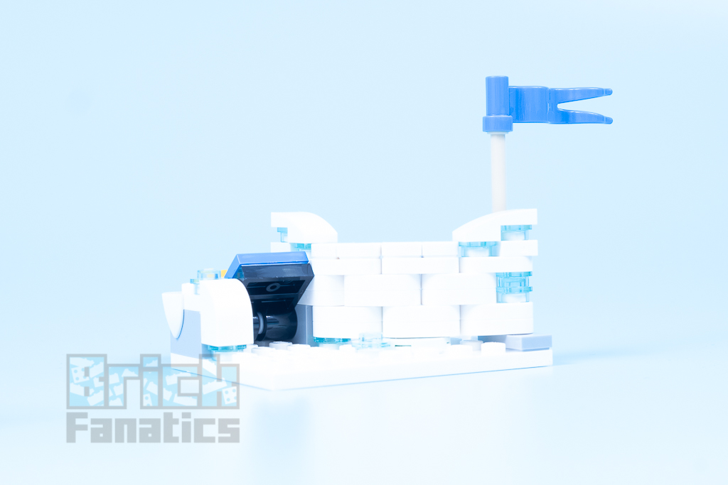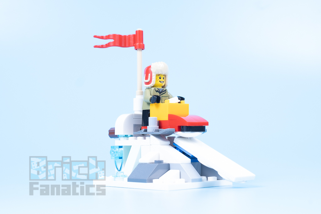 All'interno di quella piccola scatola si trova la battaglia a palle di neve più estrema che i progettisti potessero immaginare - mentre nel mondo reale, i bambini - o "adulti" - afferrano una palla di neve e la scagliano, in questo scenario le due minifigure di bambini hanno escogitato un elaborato tattiche di combattimento a palle di neve. Il ragazzo ha una slitta, su cui ha caricato le palle di neve, e scivolerà giù da una collina. Nel frattempo, la ragazza ha costruito un muro dietro cui nascondersi e sta catapultando le sue palle di neve. È meravigliosamente stupido e fantasioso.
