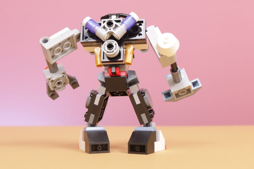 Sono proprio queste braccia a fornire molta articolazione e giocabilità nel modello, per la loro gamma di movimento e per i modi particolari in cui interagiscono: il braccio a martello in grado di muoversi avanti e indietro e il braccio ad artiglio in grado di afferrare oggetti in modo piuttosto convincente. In combinazione con le articolazioni sferiche su spalle, fianchi e caviglie, c'è molto movimento e gioco in tutto questo modello, il che è abbastanza notevole considerando che l'intero set contiene solo 140 pezzi.