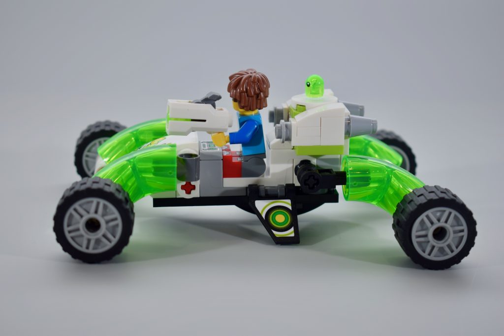 È anche relativamente facile passare da un veicolo all'altro, cosa che potresti voler fare per riporlo o visualizzarlo più facilmente. L'unico lato negativo della versione volante di 71471 Il fuoristrada di Mateo è che non si posiziona facilmente sulla sua base, poiché non è piatto o dotato di ruote. Ciò potrebbe significare che desideri riportarlo alla versione da strada ogni volta che non vola attivamente, per evitare che si ribalti su un lato.