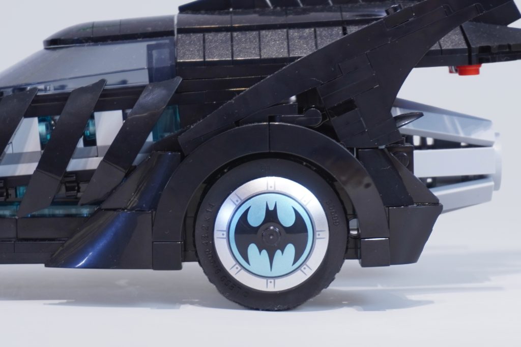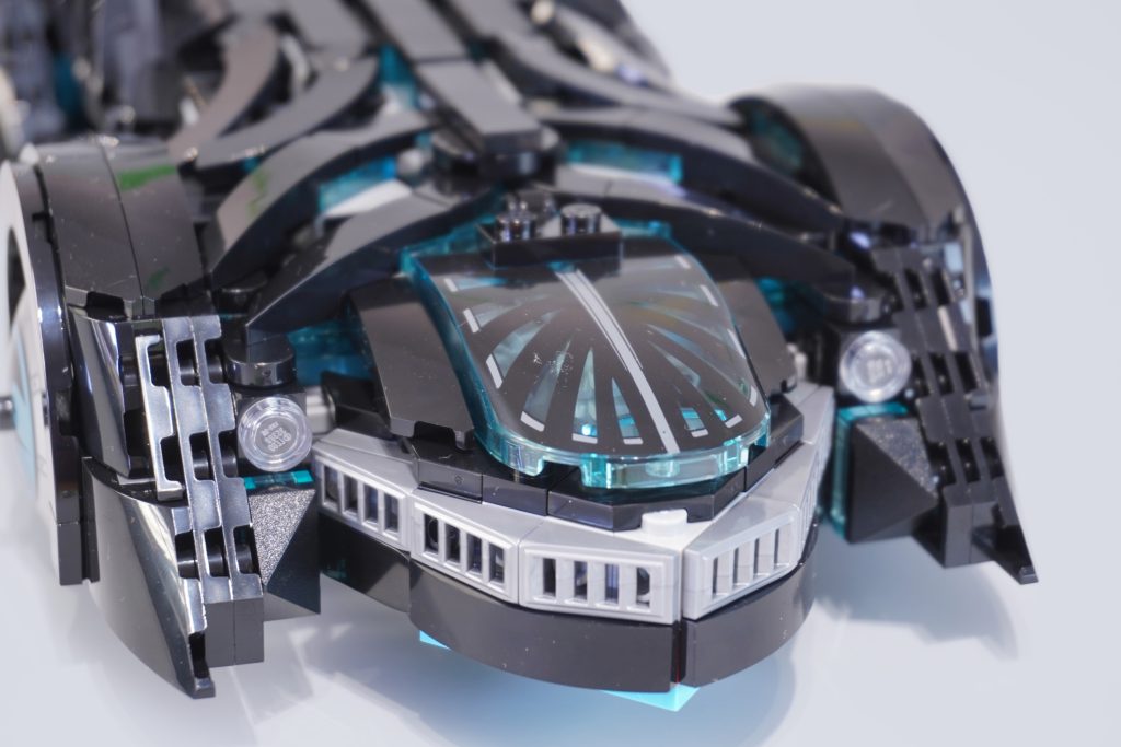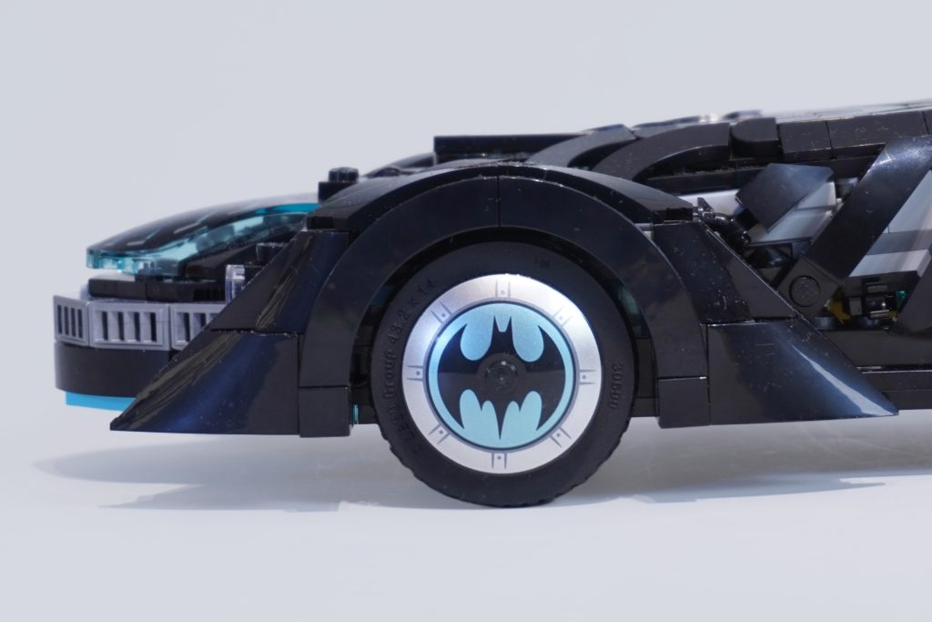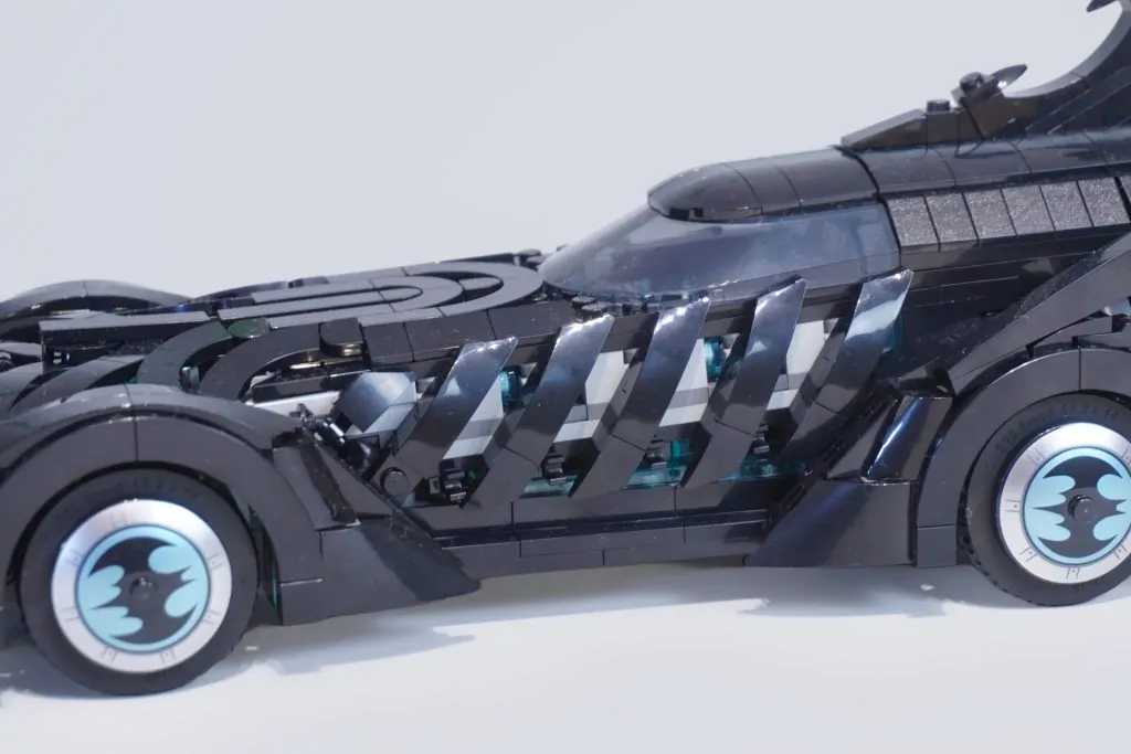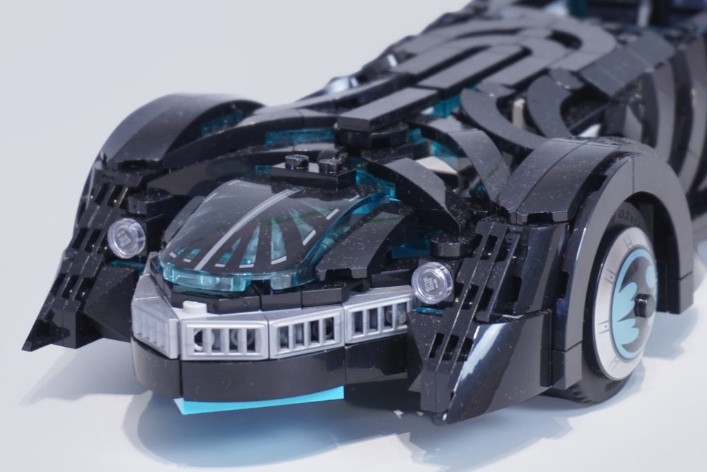 Per quanto vibrante e appariscente possa apparire la Batmobile di Val Kilmer, non è una forma che si adatta particolarmente bene ai LEGO. L'auto presenta una texture con un motivo a coste nere che non dev'essere stato facile da riprodurre con i mattoncini e, sebbene la soluzione qui sia ammirevole, non è particolarmente ben ancorata.