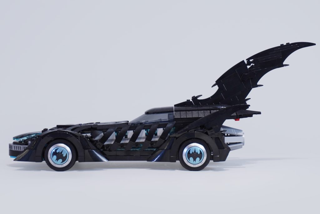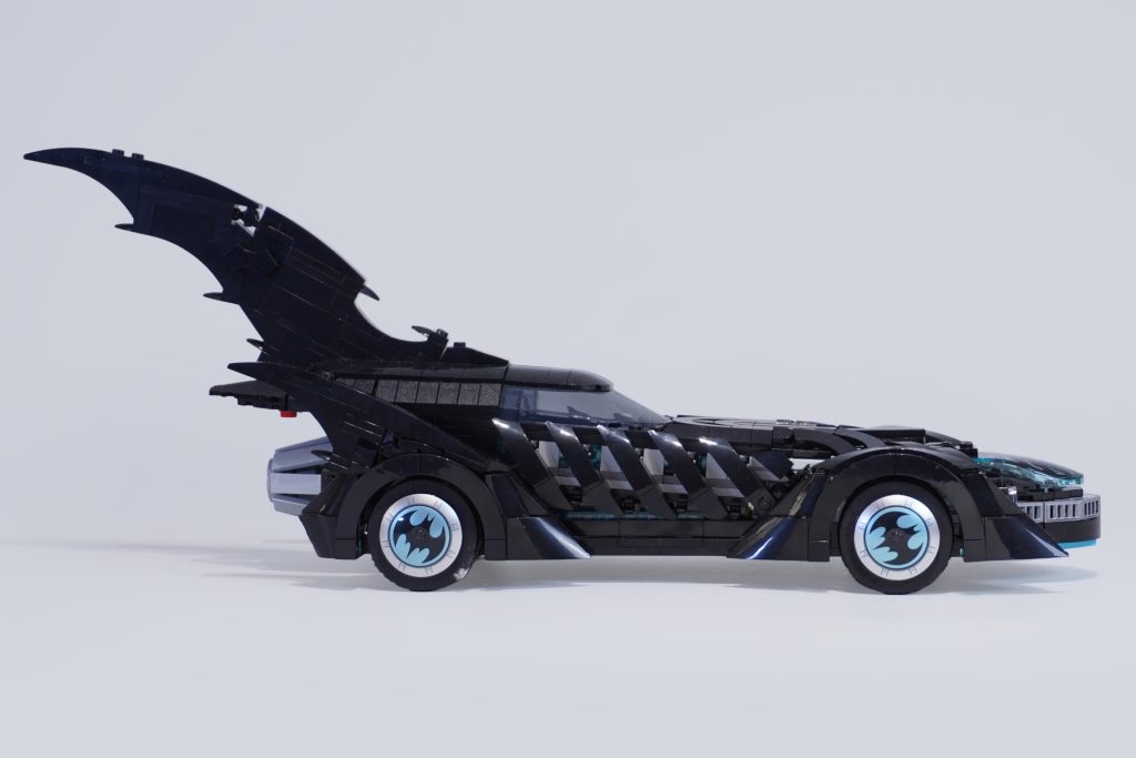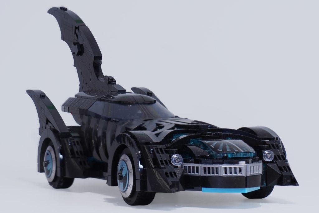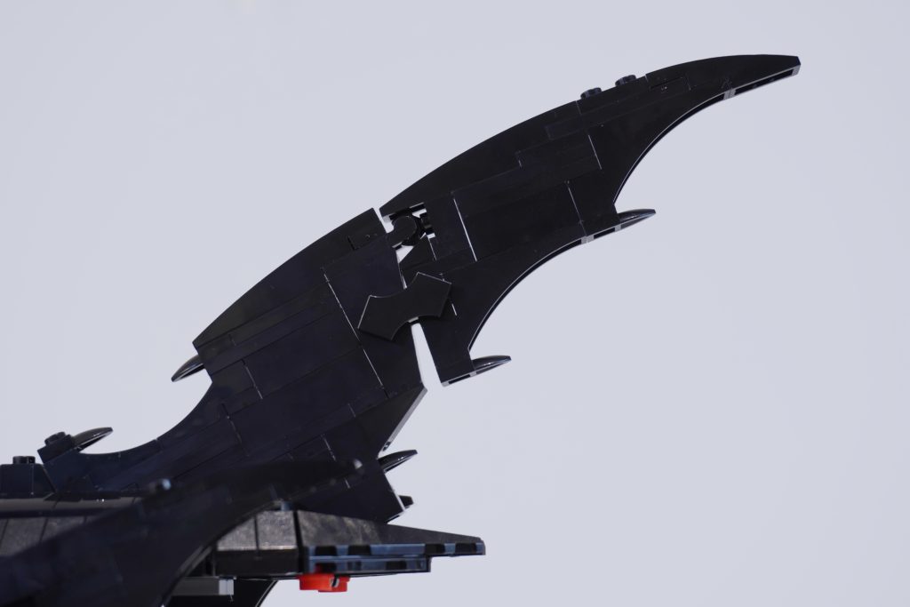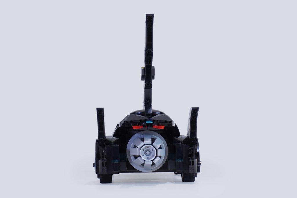 Per quanto vibrante e appariscente possa apparire la Batmobile di Val Kilmer, non è una forma che si adatta particolarmente bene ai LEGO. L'auto presenta una texture con un motivo a coste nere che non dev'essere stato facile da riprodurre con i mattoncini e, sebbene la soluzione qui sia ammirevole, non è particolarmente ben ancorata.