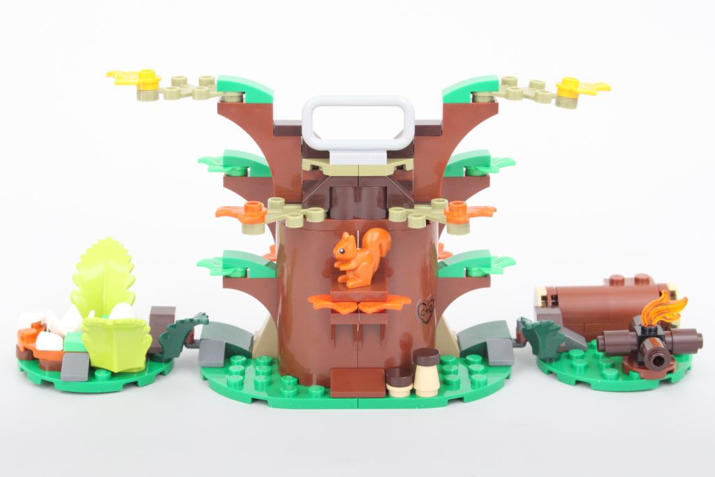 Il resto di 76965 Missioni dei dinosauri: scoperta dello stegosauro è costituito da una piccola scena forestale composta da tre moduli staccabili. Questi includono un albero con una postazione di vedetta, un nido e un accampamento in cui riposare. Nessuno di questi è degno di nota, anche se il cespuglio aggiunge un elemento di potenziale narrativo combinato con il piccolo Velociraptor.