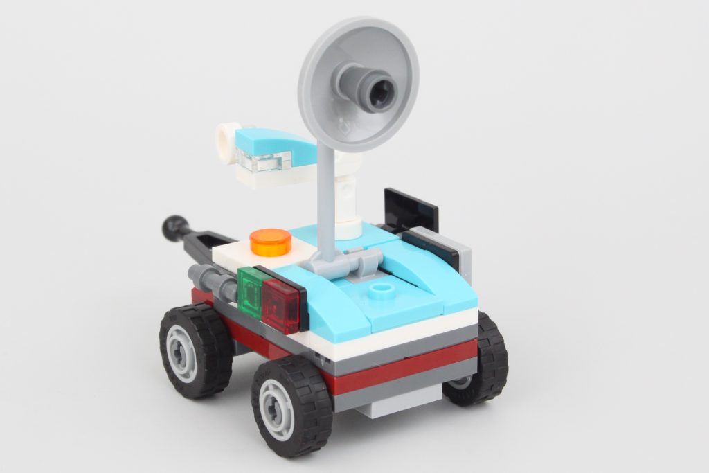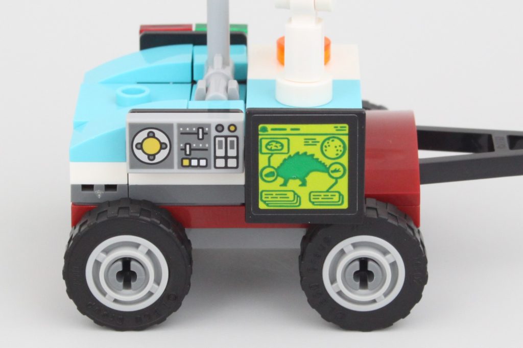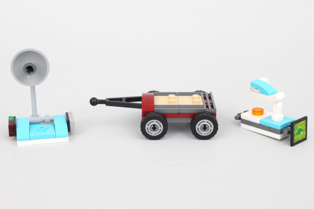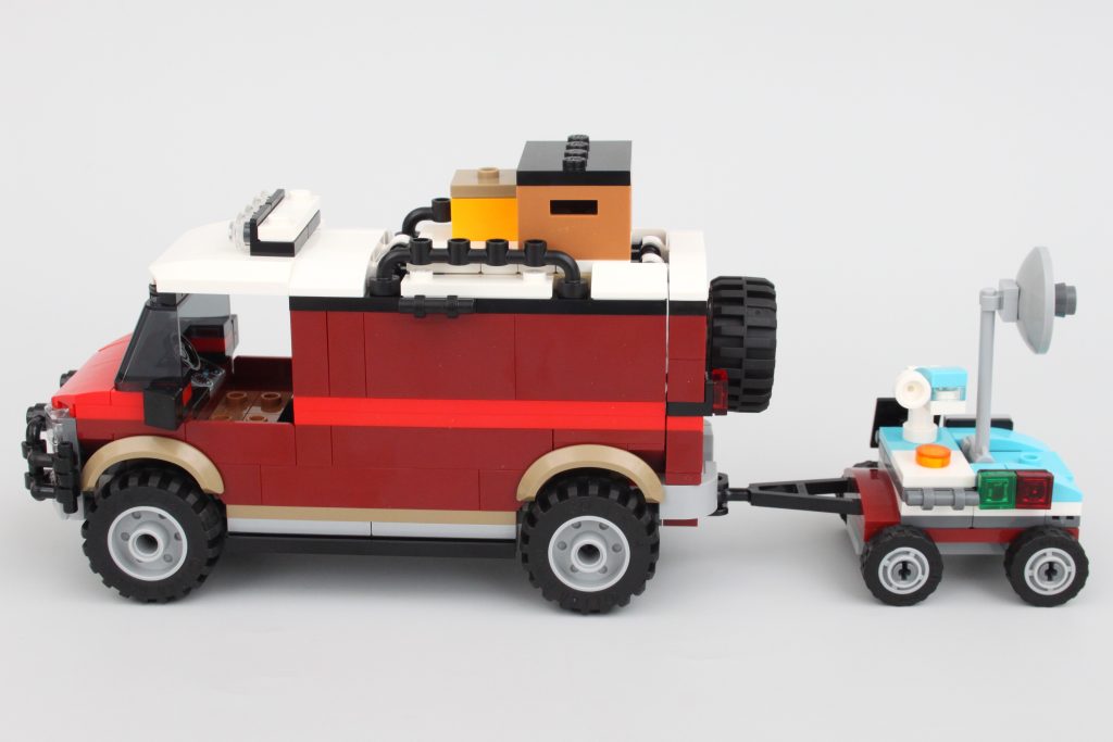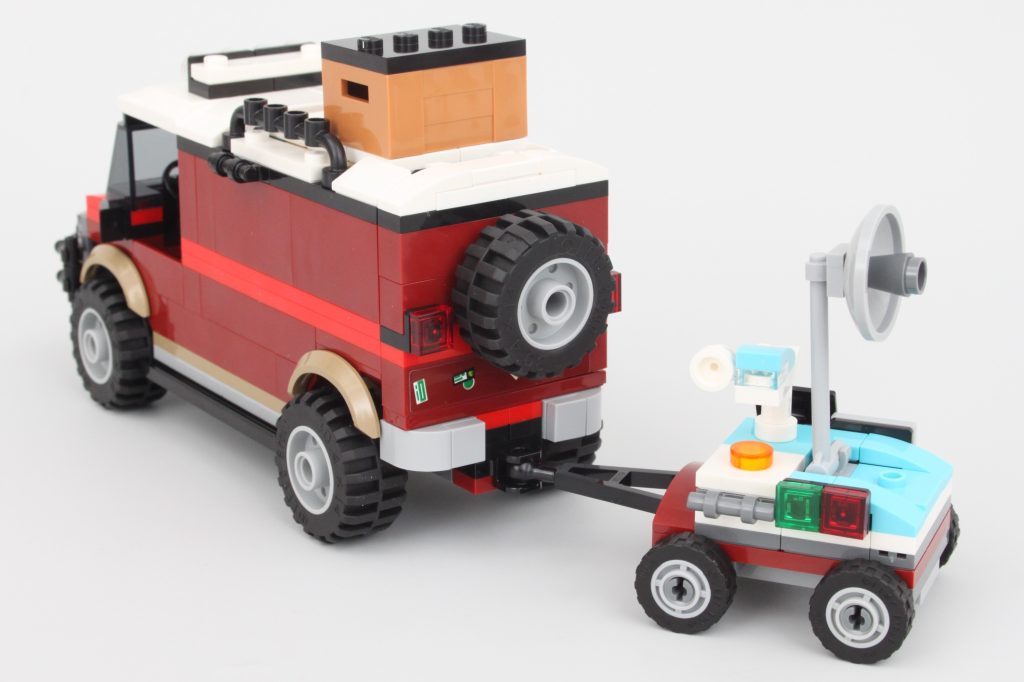 La versione finale del set comprende un furgone e un piccolo rimorchio con attrezzatura scientifica. Quest'ultimo è relativamente poco interessante, con poche parti mobili e funzioni. Sul rimorchio è difficile vedere le minifigure interagire con l'attrezzatura, ma fuori dal rimorchio tutto è troppo basso rispetto al terreno ed è difficile trovare un posto per loro nel gioco rispetto al posto di vedetta e al furgone. La combinazione di colori è accattivante, in netto contrasto con la combinazione di colori rossi del furgone.