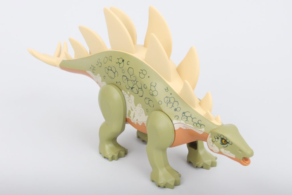 La star dello spettacolo in 76965 Missioni dei dinosauri: scoperta dello stegosauro È, senza dubbio, il nuovo Stegosauro. Queste creature sono rare nel mondo LEGO e questa è la prima volta che la specie riceve un elemento fisico specializzato nell'era moderna dei dinosauri LEGO.