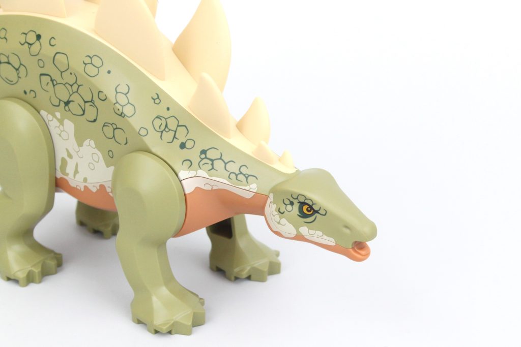 Il nuovo Stegosauro in arrivo 76965 Missioni dei dinosauri: scoperta dello stegosauro è la prima interpretazione di questo dinosauro LEGO che utilizza questo specifico elemento, costituito da un corpo unico, testa e coda in un unico pezzo, oltre alle quattro zampe standard utilizzate per vari Triceratopi e altri. Sfortunatamente, questo significa che lo Stegosauro LEGO ha movimenti limitati, senza alcuna articolazione di testa o collo.