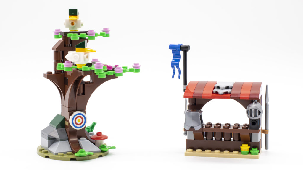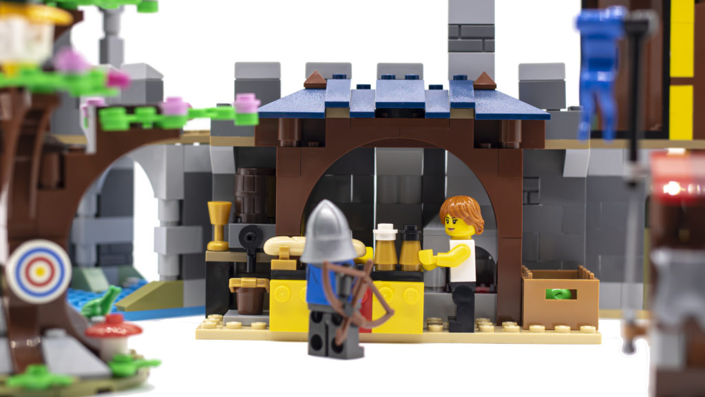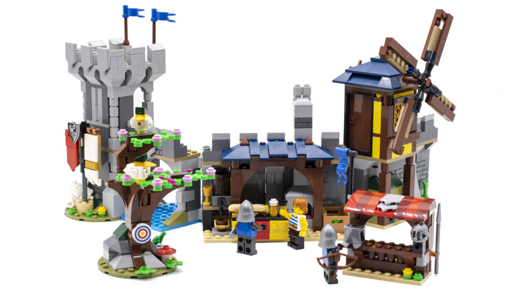 La torre, la bancarella del mercato e il mulino a vento sono tutti incernierati separatamente, il che consente una serie di configurazioni diverse, e con l'albero e l'armeria di accompagnamento sono possibili ancora più opzioni di visualizzazione e gioco. In realtà è la build più versatile delle tre. Crea una piccola scena meravigliosa, che ricorda molto una città medievale del vecchio mondo e utilizza il minor numero di mattoni, quindi c'è spazio per aggiungere ancora più costruzioni laterali.