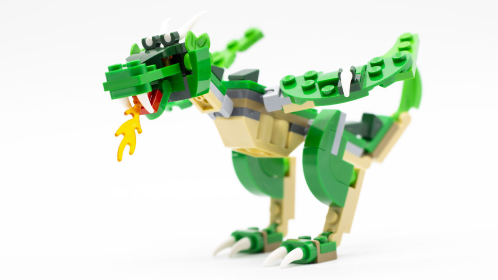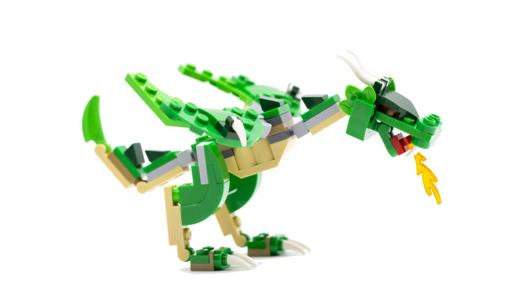 Anche i polli e il gallo sono delle piccole costruzioni brillanti, e la stessa tecnica è usata per la banderuola che si trova in cima al mulino ad acqua. Il drago, invece, è una gioia assoluta da costruire. Costruito in sezioni che si collegano con giunti sferici e incavi, la bestia sembra incredibile e ha così tanta articolazione che le opzioni per le pose sono quasi illimitate. È davvero un design fantastico.
