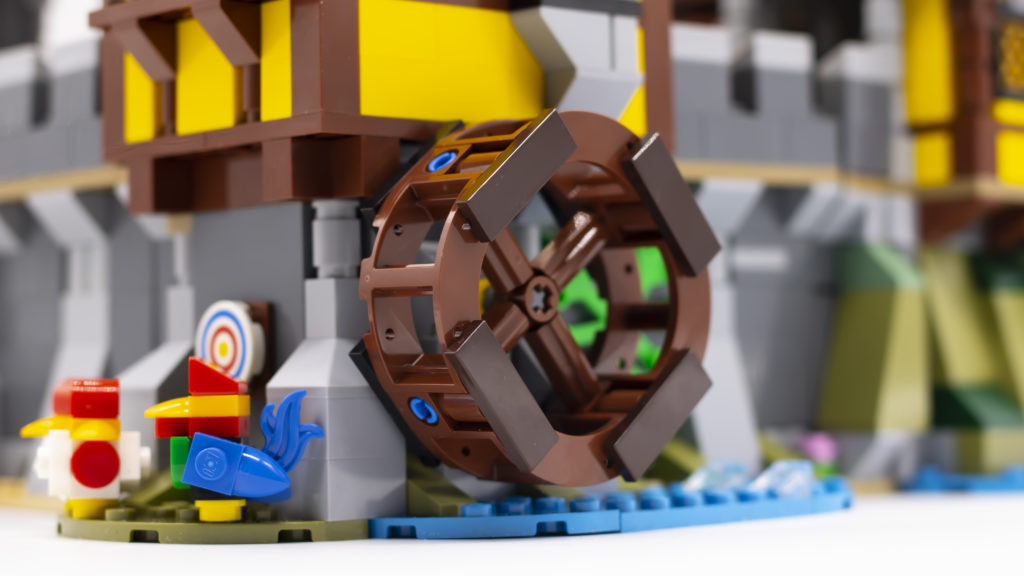 Ogni lato del castello è altrettanto piacevole da costruire. Un lato presenta una sala del trono, l'officina del fabbro e una ruota idraulica. La ruota idraulica è collegata al martello del fabbro e quando viene girata colpisce l'incudine: è un tocco preciso e una caratteristica di gioco inaspettata che funziona perfettamente.