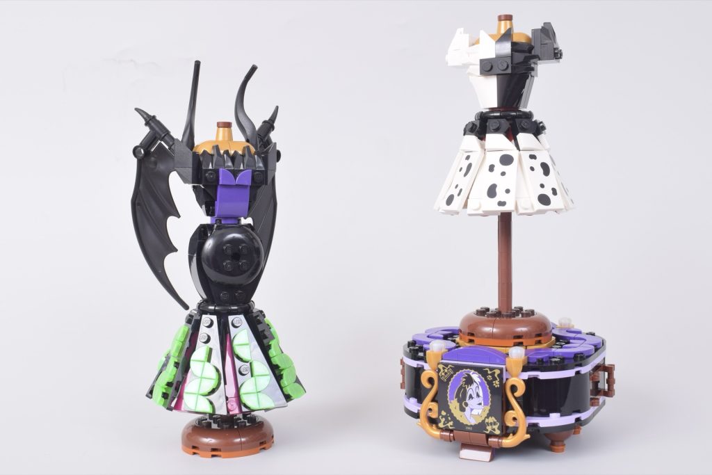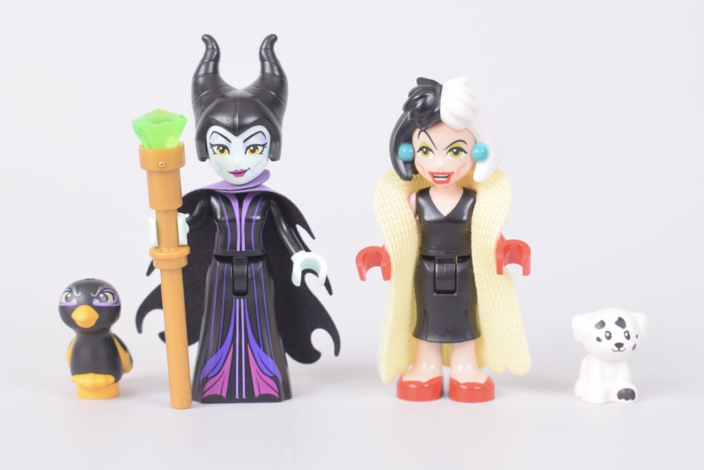 Mentre le minifigure tendono ad essere preferite dai più grandi LEGO fan, in questo caso di un set incentrato sull'esposizione, le mini-doll reggono il confronto. Il maggior dettaglio consentito nella stampa sui volti, così come i corpi più lunghi più in linea con lo stile degli abiti, significa che queste mini-doll sembrano più a loro agio in 43262 Abiti di Malefica e Crudelia De Mon rispetto alle minifigure.