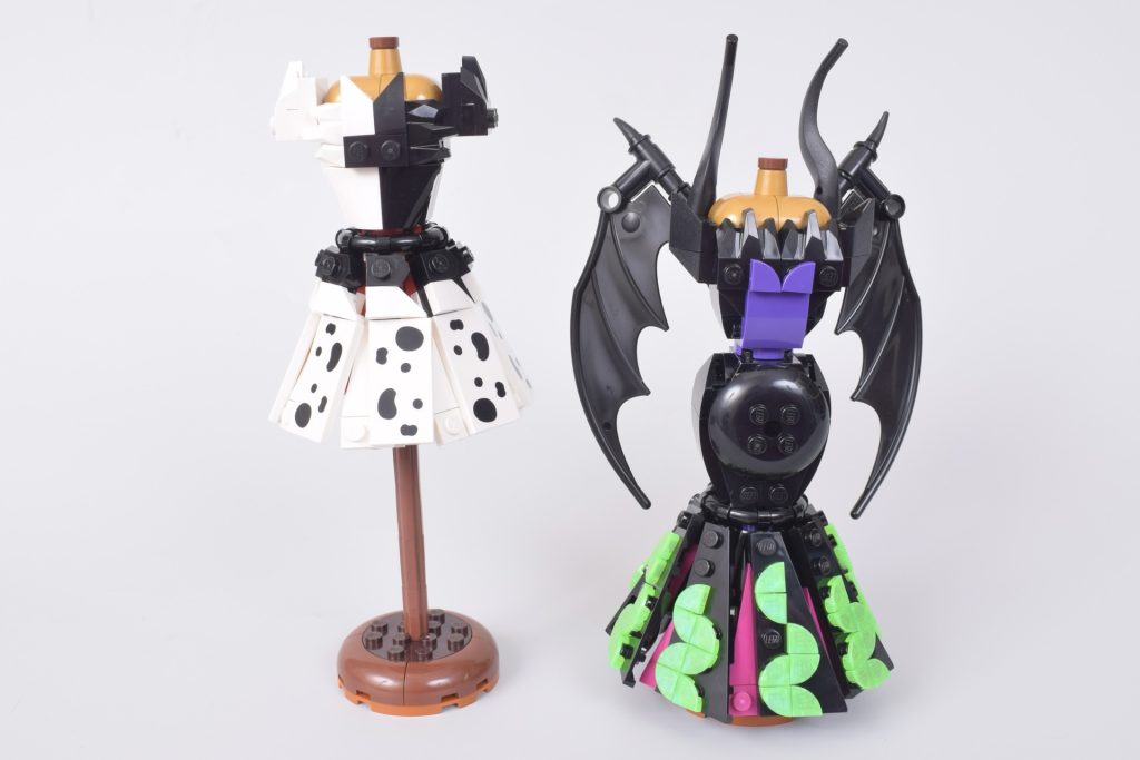 Opinione onesta: I colori contrastanti e le tecniche di costruzione creative nei due abiti in 43262 Abiti di Malefica e Crudelia De Mon costituiscono un set divertente sia da costruire che da guardare.