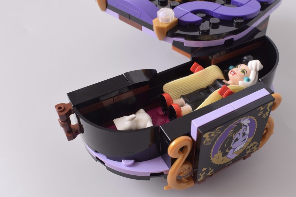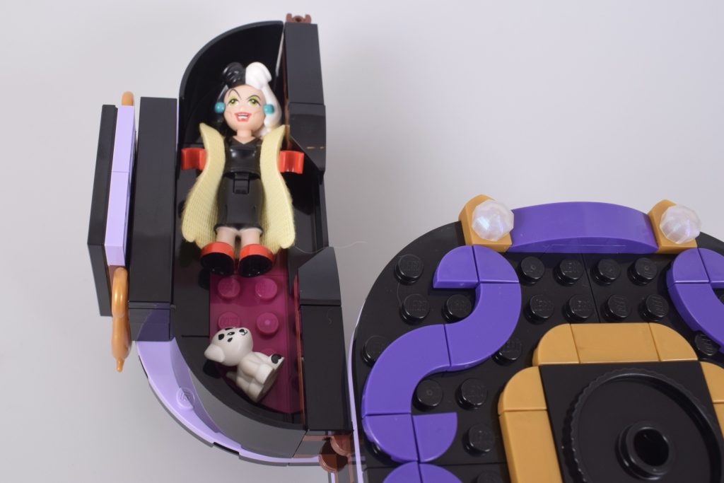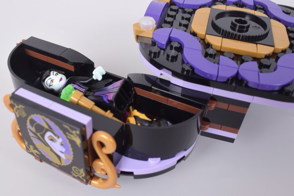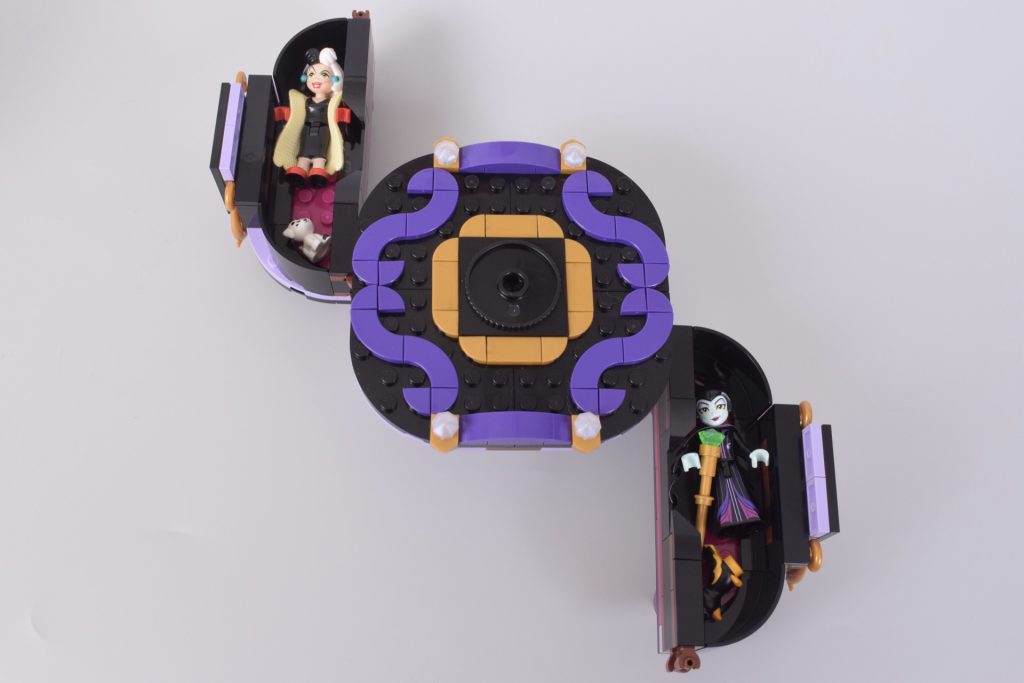 Gran parte del tempo di costruzione viene dedicato alla base, il che sarebbe frustrante se non fosse così dannatamente ingegnoso. 43262 Abiti di Malefica e Crudelia De Mon sarà probabilmente più popolare tra i costruttori più giovani, ma i progettisti sembrano aver pensato anche ai genitori, proponendo un modo semplice per riporre le mini-bambole quando il tempo del gioco è finito.