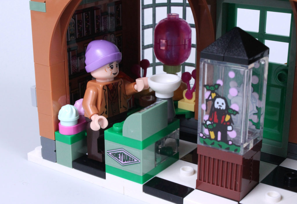 I proprietari di Honeydukes, Mr. Flume e Mrs. Flume, sono il tipo di personaggi poco noti che non ti aspetteresti mai di vedere sotto forma di minifigure, ma sono perfettamente in linea con l'atmosfera da videogioco che questo set trasmette (essendo entrambi apparsi come personaggi giocabili in LEGO Harry Potter: Anni 1-4). Non sono i personaggi più eccitanti, ma per i collezionisti veterani sono più i benvenuti di, diciamo, un altro Ron e Hermione. (Anche se Ron appare comunque, è stato semplicemente fuso in oro.)