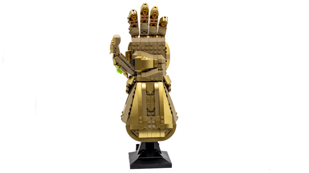 È insolito per un modello come questo avere funzionalità di gioco integrate, poiché di solito sono destinate esclusivamente alla visualizzazione. Tuttavia, come bella aggiunta, le dita del guanto sono completamente snodabili, consentendo al set di essere visualizzato con le dita allargate, in un pugno chiuso, dando un pollice in su o, più opportunamente, posato nell'iconico scatto di Thanos.