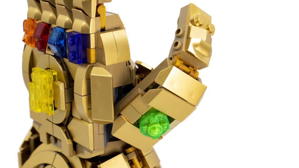 Infine, ogni Gemma dell'Infinito non solo sembra fedele all'originale (realizzata da una collezione di pezzi opportunamente colorati), ma è anche l'ultimo elemento ad essere aggiunto al modello, dando ai fan l'esperienza di aggiungere ogni pietra, una per una, al potente manufatto. Una volta terminato, il modello finale sembra assolutamente superbo.