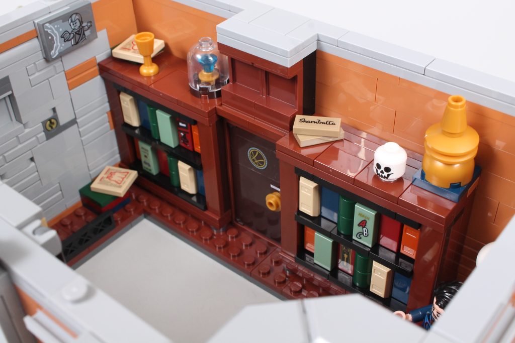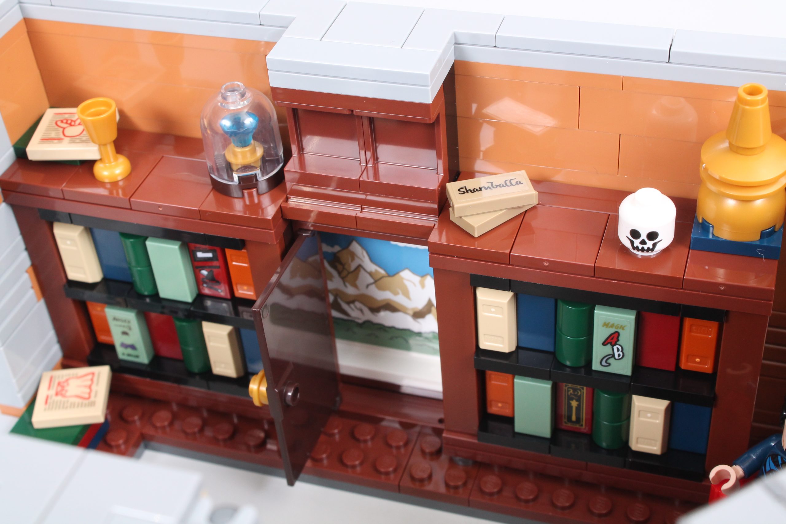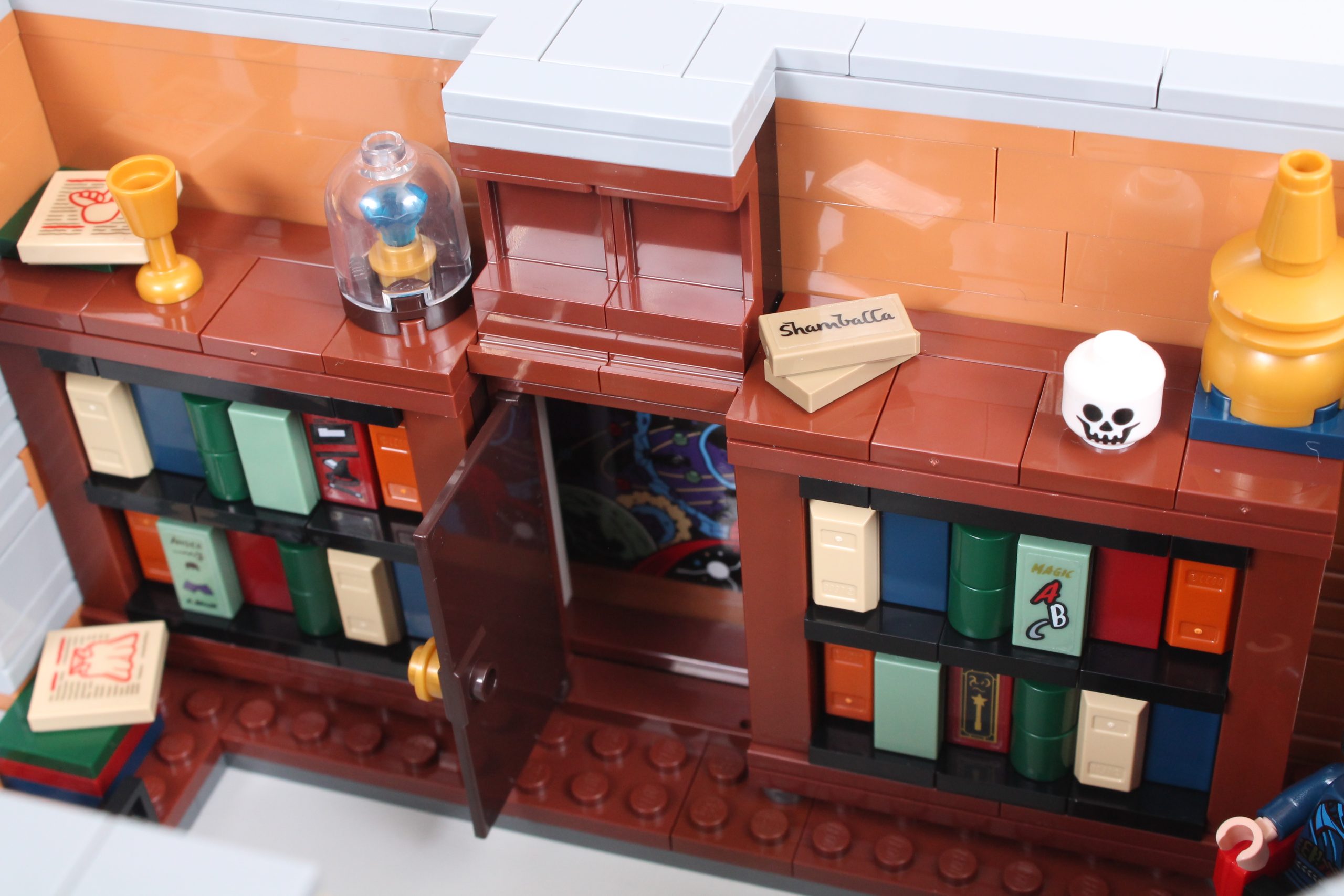 E se hai intenzione di mostrarlo da solo, o forse solo con 76178 Tromba Giornaliera? Il LEGO Group ha soddisfatto in abbondanza anche la tua sezione del diagramma demografico di Venn: principalmente attraverso il suo foglio di adesivi, ma anche attraverso alcuni dei suoi sottoassiemi, 76218 Sanctum Sanctorum è assolutamente pieno di riferimenti e dettagli al Marvel Cinematic Universe (una pubblicità di Shawarma, pietre dell'Infinito nel cassonetto e semplicemente Shamballa - la password Wi-Fi di Sanctum - su una tessera 1×2), e solo alcune gag originali (una scatola con la scritta "Roba di Wong, segreto", Monkie Kidpersonale a parete e un estintore in vetrina).