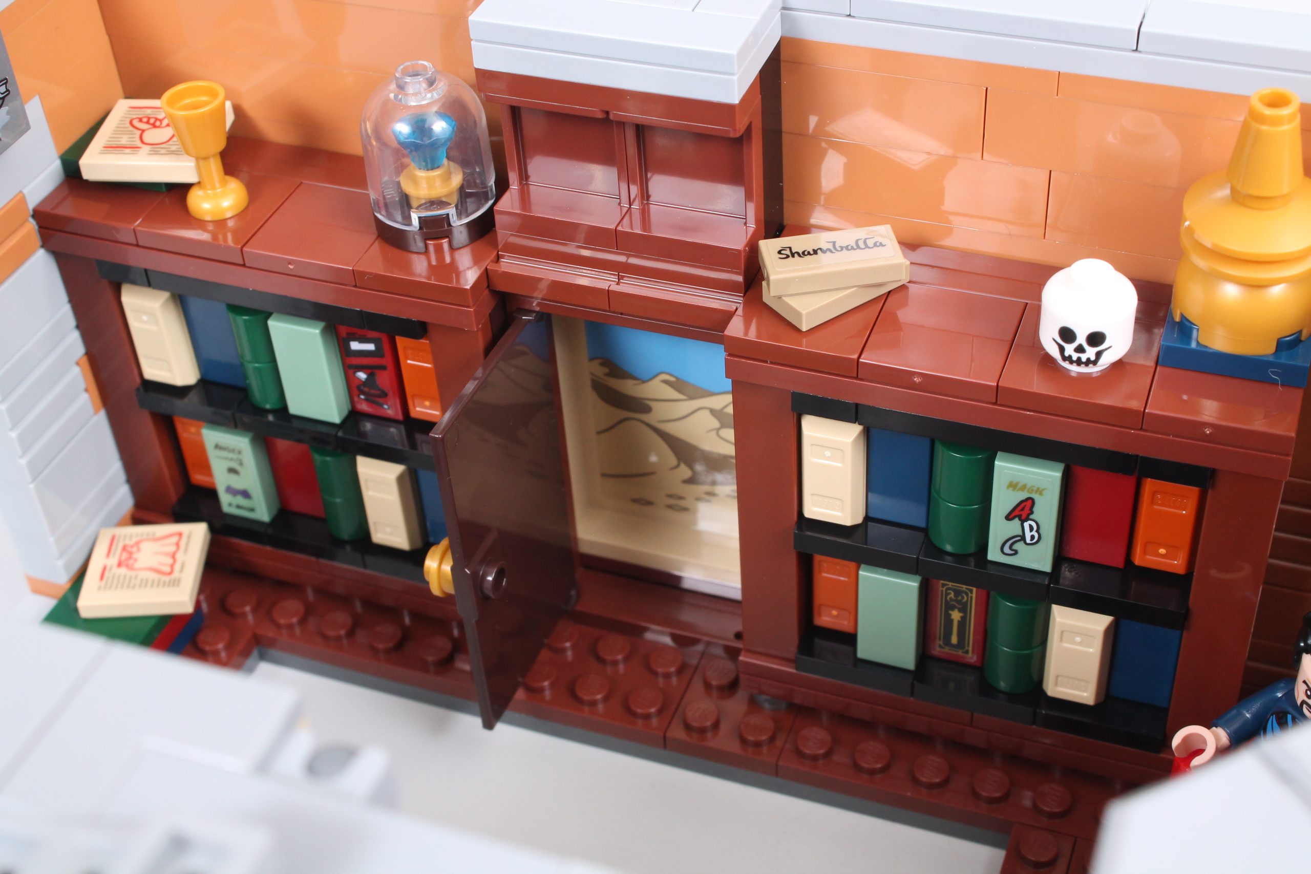 Quei pannelli hanno almeno una buona ragione per esistere, contribuendo a una delle due funzioni interattive integrate in 76218 Sanctum Sanctorum. Sul retro dell'edificio, noterai un paio di prese d'aria che sporgono dal muro, suggerendo che Doctor Strange è grande per l'aria condizionata e poco per l'ambiente. Ma questi hanno uno scopo segreto: non sono fissati in posizione e possono invece scorrere lungo il muro per manipolare i pannelli nascosti all'interno della libreria del secondo piano. Apri la porta che si trova tra i libri, su cui è adesivo il Sigillo dei Vishanti, e verrai trasportato sulle montagne, nel deserto o in una dimensione ultraterrena (a seconda della posizione delle prese d'aria).