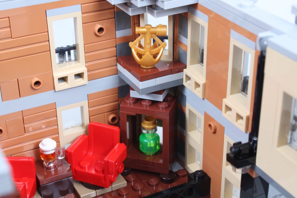 Questo set avrebbe beneficiato di essere più profondo senza un vicolo sul retro per dare alle stanze un posto dove respirare. Dare più spazio per lo scalone d'onore e la stanza del tesoro. Certo, non tutti apriranno il set per giocare ed è principalmente solo per la visualizzazione. Mi piacerebbe sapere se qualche maestro del mattone ha una lista di pezzi per espandere il retro.
