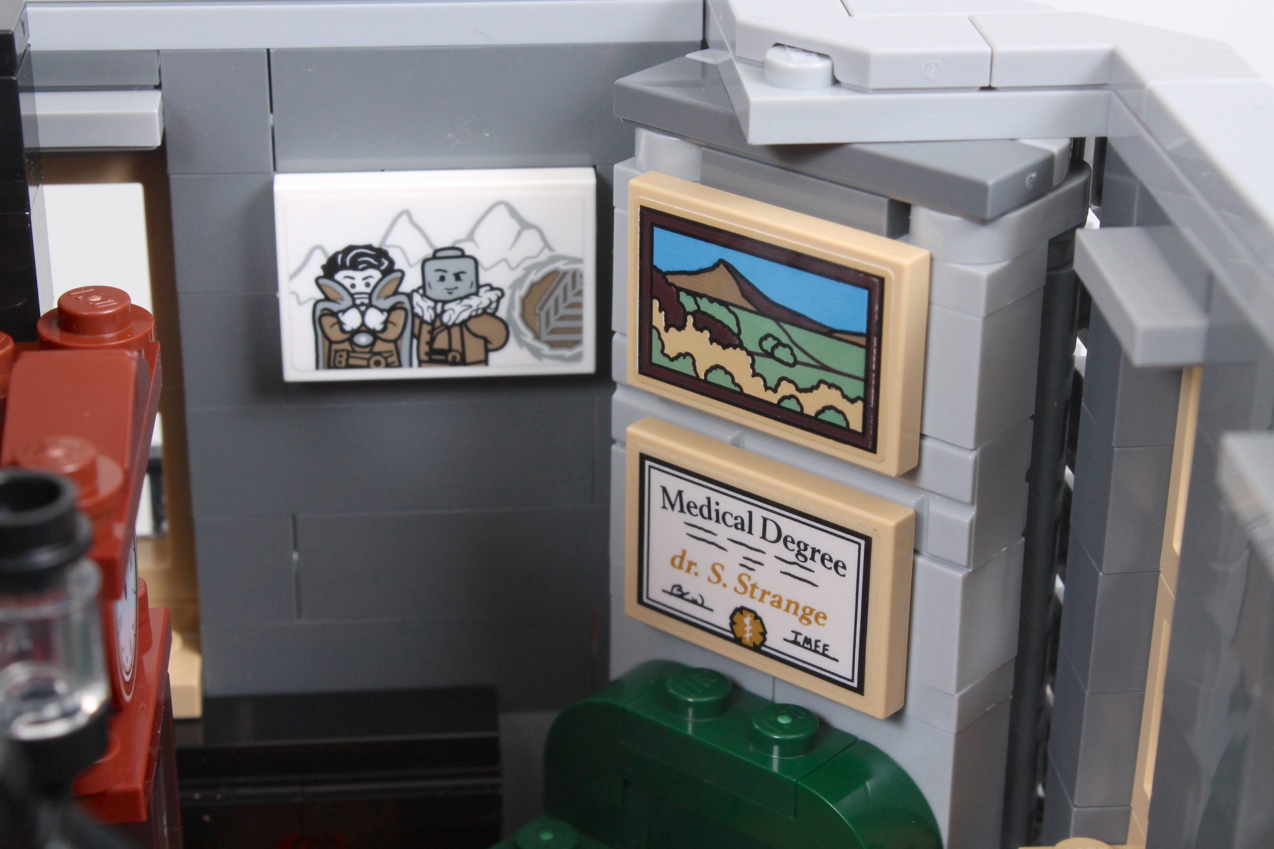 Proprio su quegli adesivi, c'è un 47 da far venire l'acquolina in bocca da applicare sui 76218 pezzi di 2,708 Sanctum Sanctorum, ma hanno quasi tutti un senso nel contesto del set. Se stai acquistando questo esclusivamente per aggiungere al tuo modulare città, e non ti preoccupare di un briciolo Marvel, puoi lasciare gli adesivi e assimilarli facilmente al tuo layout. Cominciano davvero a grattare solo su piccoli pezzi, come il numero di edificio 177a su una tessera 1×1, o i tre identici adesivi per giornali 'Law Times' su piastrelle 1×2 (sicuramente quelli avrebbero potuto essere stampati, data la loro quantità?) . Oh, e all'interno di tre pannelli, che sono sempre un incubo da applicare. (Ma almeno non sono pannelli curvi.)