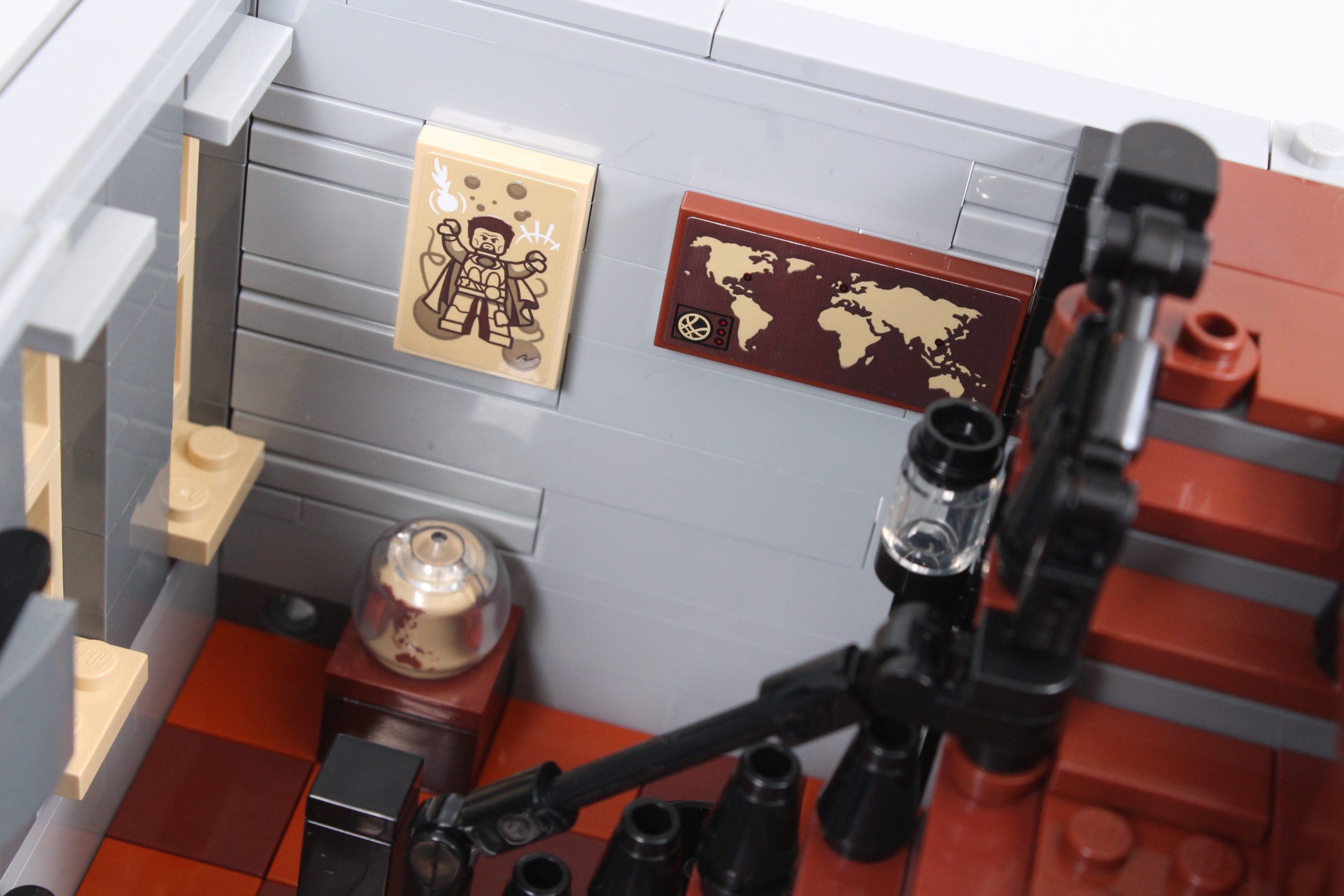 Tutti e tre questi pannelli sono completamente intercambiabili sui tre piani (con una leggera rotazione del cartellone, a seconda della posizione), offrendo molteplici opzioni di visualizzazione all'interno di un unico edificio. È un'aggiunta intelligente che distingue immediatamente il 76218 Sanctum Sanctorum da tutti i Sanctorum personalizzati in circolazione, conferendo al contempo a questo edificio altrimenti piuttosto modesto un carattere che va oltre le aspettative.