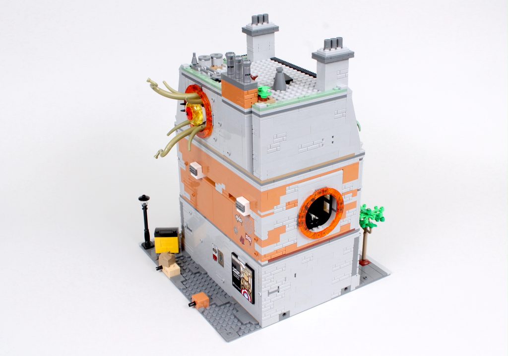 Bonus: 76218 Sanctum Sanctorum corregge abilmente anche un errore con 76178 Tromba Giornaliera, che posiziona uno dei suoi mattoni 1×2 con Technic forare un singolo perno da dove deve essere per collegarsi con altri edifici modulari. Come illustrato da YouTuber Lampo di cenere, il Sanctorum incorpora un mattone 1×4 con tre Technic fori, consentendo a entrambi gli edifici di collegarsi secondo le loro istruzioni.