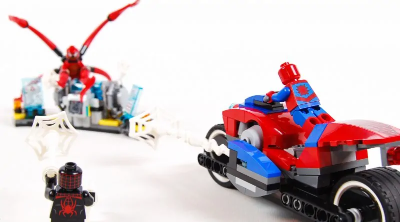 In 76113 Spider-Man Salvataggio in bicicletta, Spidey sta attraversando New York per fermare Carnage, non oscillando tra gli edifici, ma su una moto. Il set include anche un generatore di corrente da costruire, le due minifigure più importanti: Miles Morale e Carnage.