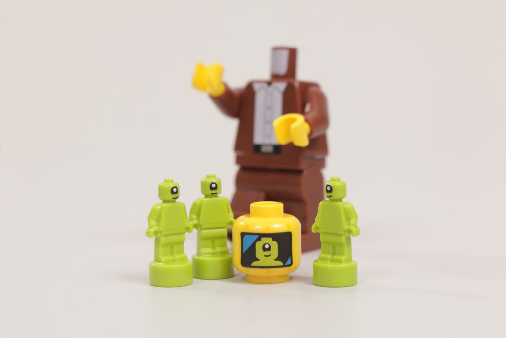 Questo sembra essere il cavallo oscuro di 71046 Serie 26 SpazioÈ ovviamente bello, sì, ma per quanto sia intelligente e divertente, è davvero geniale. I piccoli alieni sono super carini e quel pezzo di ricambio aumenta il conteggio a tre in una scatola, mentre la stampa sulla testa della minifigure dell'Impostore corrisponde perfettamente in scala, colore e aspetto. L'altro lato della testa ha un contorno sottile dove il pannello del viso è stato fissato alla parte anteriore per coprire l'alieno pilota all'interno, con un'espressione perfettamente innaturale per cercare di mimetizzarsi con le altre minifigure LEGO.
