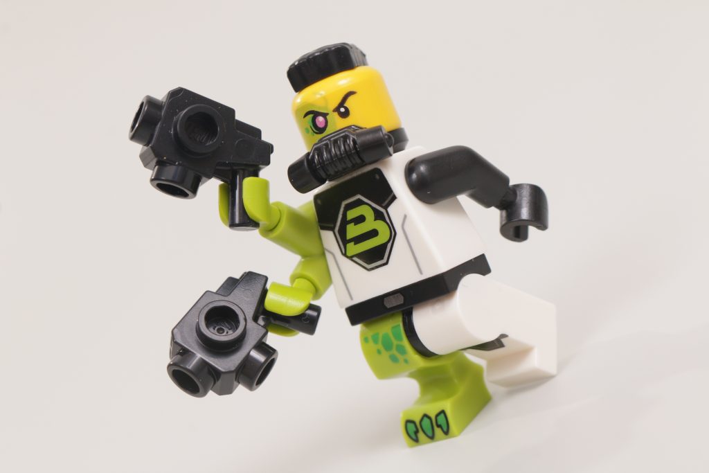 Un ritorno più sottile a un sottotema LEGO Space più recente si presenta nella forma colorata di Alien Beetlezoid. Chiaramente basato sullo stesso design alieno a forma di insetto dei personaggi di Galaxy Squad del 2013, Alien Beetlezoid offre un nuovo colore, un nuovo copricapo e gambe e ali ricolorate e appena stampate.