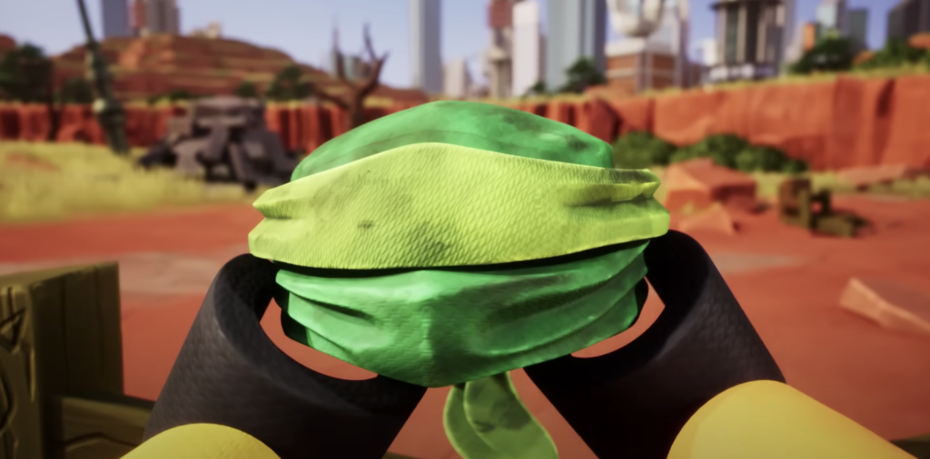 Isolato in un paesaggio desertico, qualcosa vola verso Arin e lui lo afferra al volo: un copricapo verde che sembra sospettosamente simile a quello di un certo ninja verde...