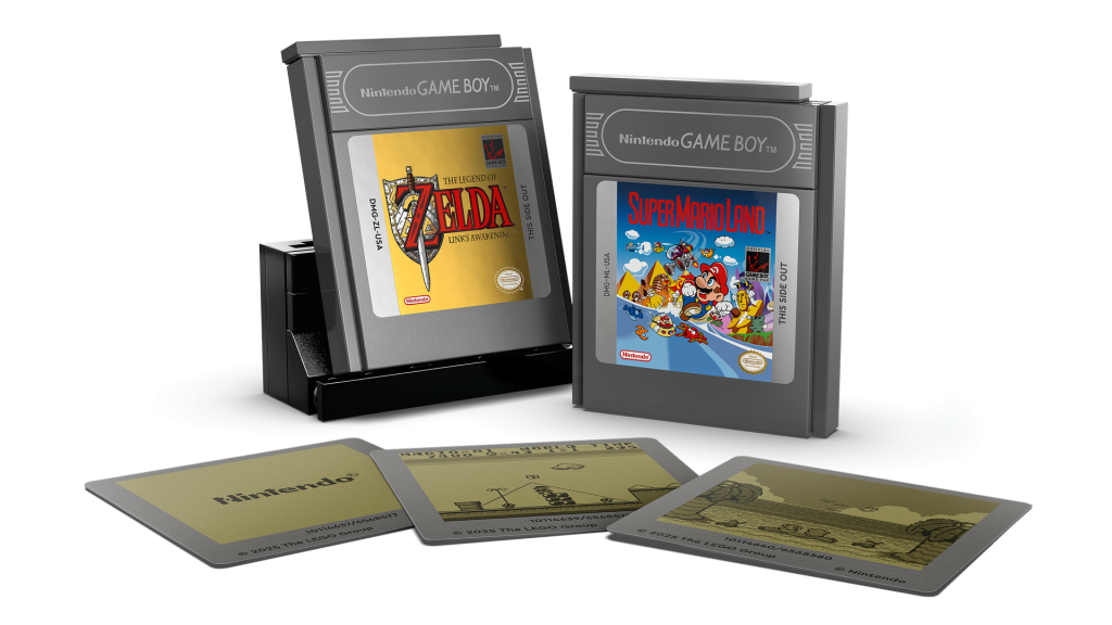 Per adattarti a questi slot, puoi anche personalizzare il tuo display con Game Pak intercambiabili e costruiti in mattoncini di The Legend of Zelda: Link's Awakening o Super Mario Game Boy Land. Ognuno ha schermi lenticolari corrispondenti, così come la schermata iniziale di Nintendo più neutra, come se la console portatile fosse in uso. LEGO il set è dotato anche di un supporto costruibile per una facile esposizione.