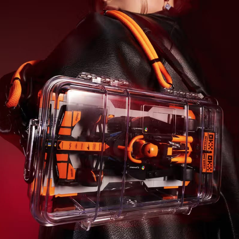 La collezione di accessori LEGO Formula 1 vanta anche un Lane Cap con una Ferrari costruita in mattoncini e una minifigure su uno sfondo da corsa sorprendente, Technic Zaino che in realtà incorpora 42206Oracle Red Bull Racing RB20 e un LEGO Speed Champions lta-bag per il trasporto 77251 McLaren F1 Team MCL38 Auto da corsa, completo di cinturini intercambiabili abbinati alla livrea.