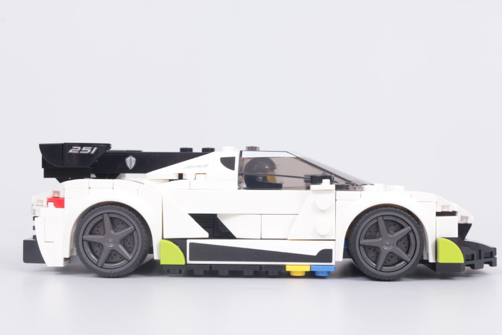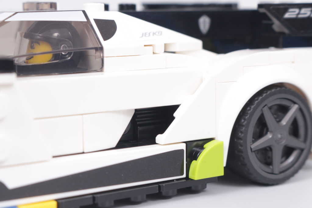 Detto questo, entro il budget di lavoro e anche entro l'ampia gamma di parti disponibili per LEGO Speed Champions team, ci sono dei compromessi nel progetto finale di 76900 Koenigsegg Jesko, che si trovano principalmente lungo i lati del veicolo. Ci sono così tante linee sottili e cambi di angolazione nella carrozzeria della Jesko lungo le porte che quasi qualsiasi cosa costruita secondo gli standard di progettazione LEGO dovrebbe fare una scelta.