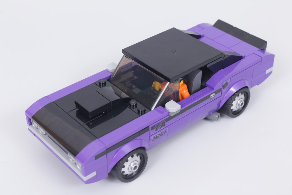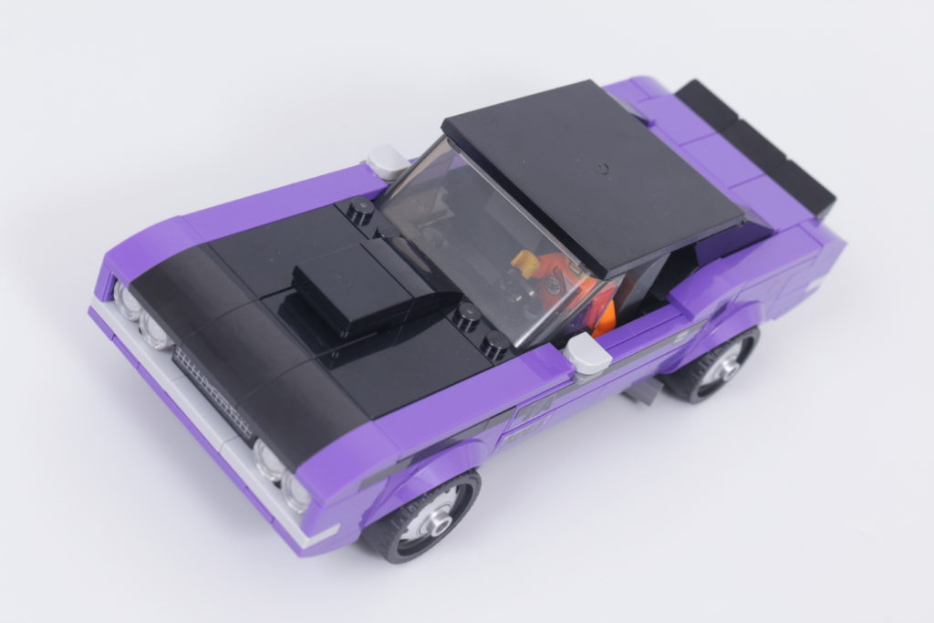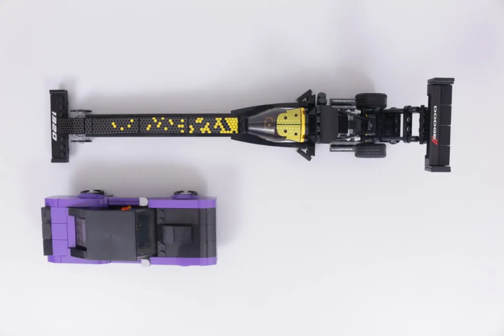 Sebbene il passaggio al design a otto perni di larghezza porti con sé molti vantaggi e l'opportunità di esplorare dettagli e autenticità nei veicoli come mai prima d'ora in formato LEGO – ed entrambe le auto di questo set ne traggono vantaggio – ci sono lievi problemi nelle proporzioni sia della Challenger che del dragster. È un compromesso per consentire alla proporzionalità e al design di respirare e può essere percepito attraverso una serie di Speed Champions automobili in un modo o nell'altro. È abbastanza evidente qui, con il design della muscle car che sembra leggermente troppo lungo e troppo alto per la minifigure inclusa, e con il dragster che appare notevolmente troppo alto e troppo lungo.