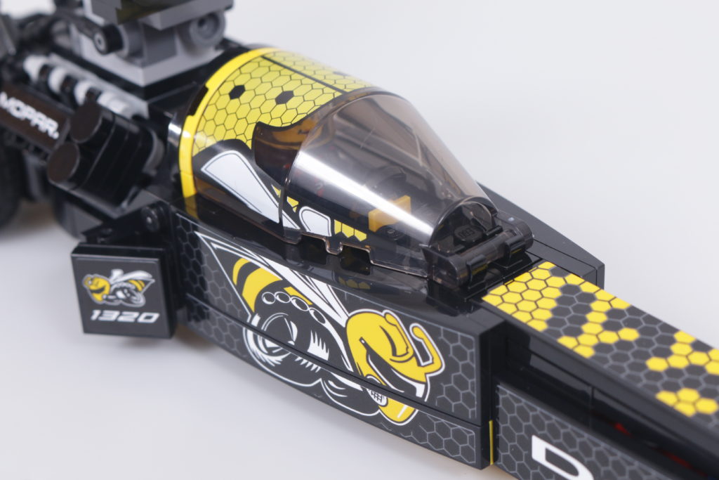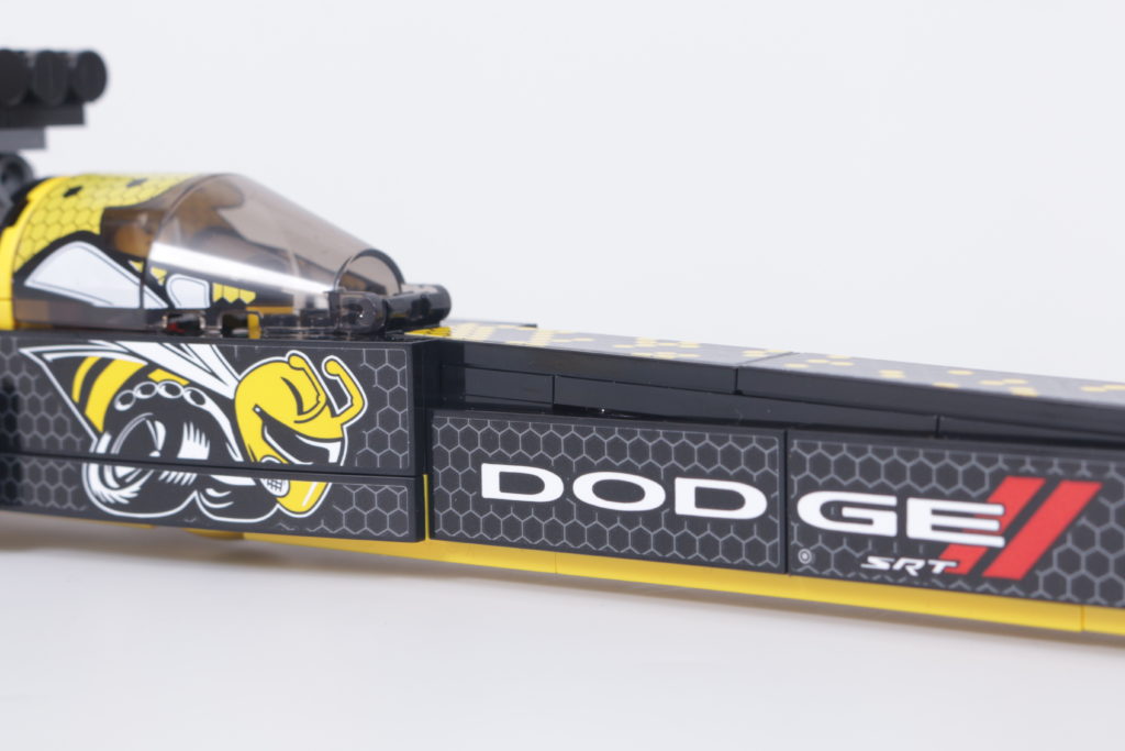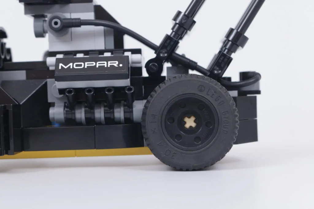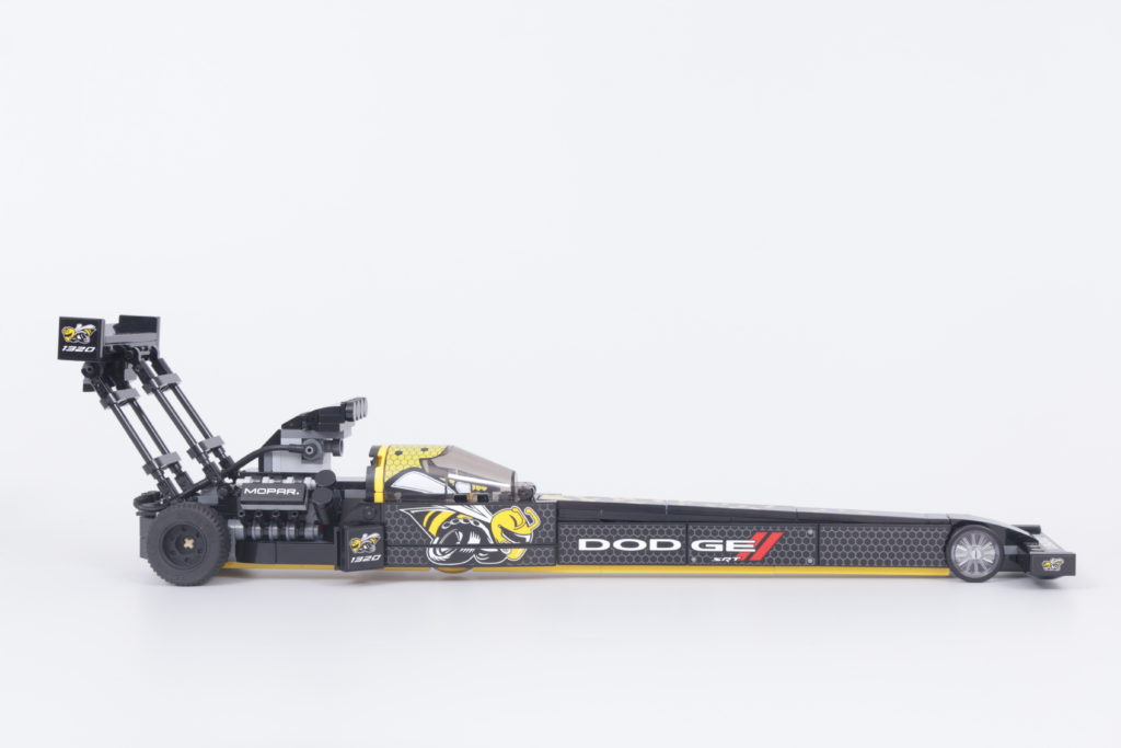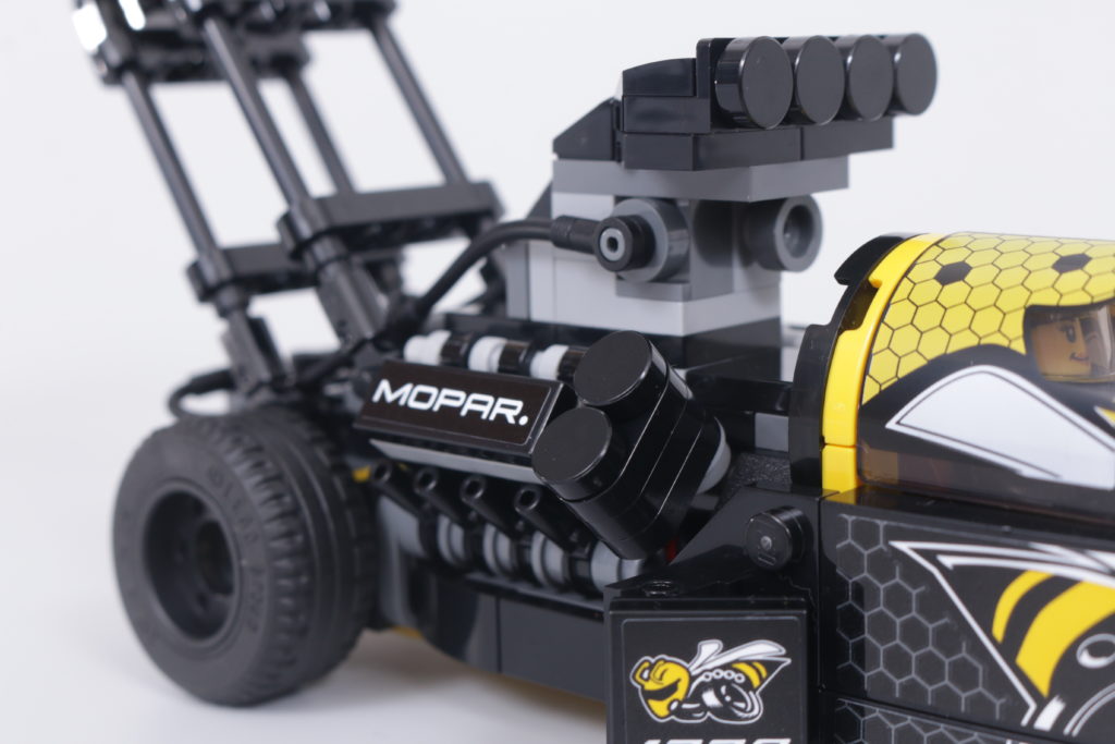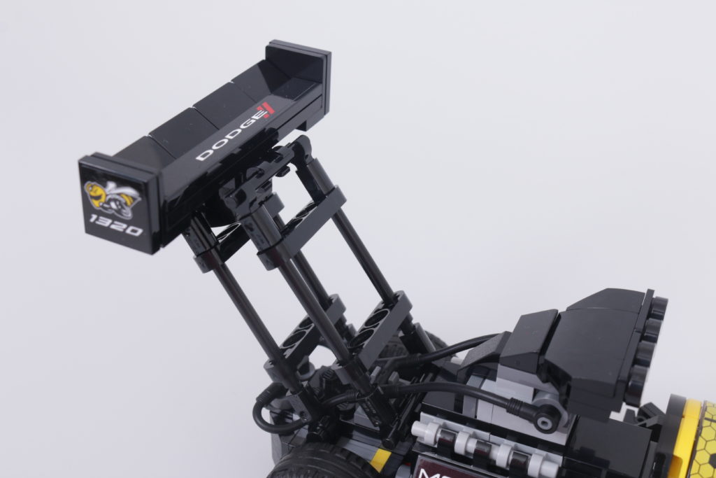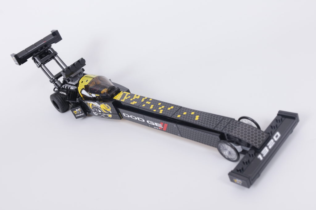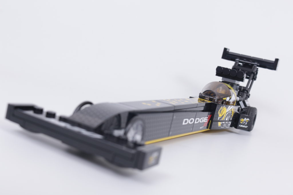 Tutto ciò che è immediatamente identificabile con un dragster è chiaramente catturato in questo modello LEGO, così come ci sono molti dettagli più specifici della struttura del dragster Top Fuel su cui si basa. Combinando questo con il marchio del Team Mopar, questa versione LEGO trasmette un'aria di autenticità, anche per chi non ha familiarità con i dettagli più raffinati di un dragster. Per molti versi, il modello non aveva il diritto di essere progettato in modo così specifico e quasi non ne ha bisogno. Ma se vi trovate a studiare la composizione del motore di un dragster, apprezzerete ancora di più la meravigliosa riproduzione in mattoncini di questa auto LEGO.