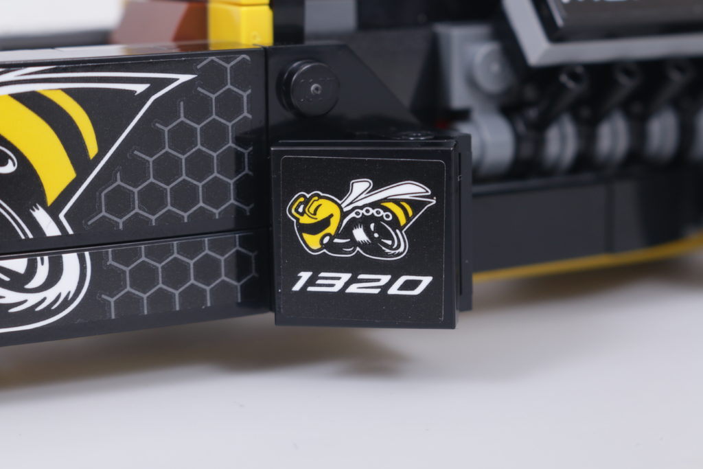 Strisce laterali nere piatte, una presa d'aria sul cofano "six pack", spoiler anteriore e posteriore, terminali di scarico "megafono", coprimozzi cromati e un lunotto "raffinato" più piccolo sono tutti specifici del modello T/A del 1970. Sebbene la versione LEGO sia più squadrata in alcuni punti di quanto si possa idealmente sperare, include in modo cruciale tutte queste cose, anche se nel caso di cose come le punte di scarico del megafono, con più licenza creativa rispetto alla costruzione creativa che Speed Champions può altrimenti offrire.