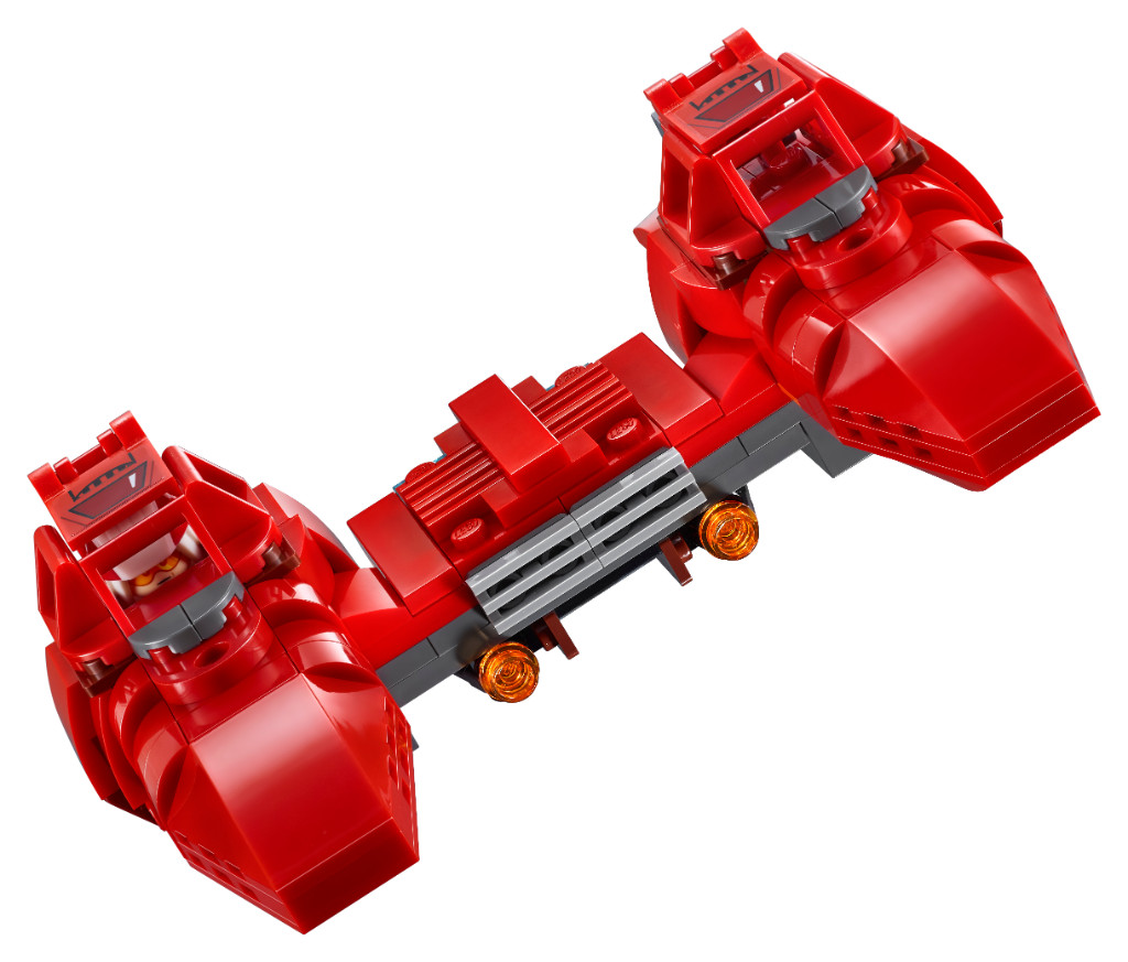 • La sezione 4 presenta un corridoio rosso scuro che conduce alla camera degli interrogatori con una sedia da interrogatorio girevole, più una cella di prigione, un hangar con una botola segreta e un porta attrezzi e armi, e spazio per la Twin-Pod Cloud Car con abitacoli apribili per minifigure e 2 shooter.