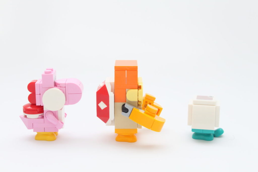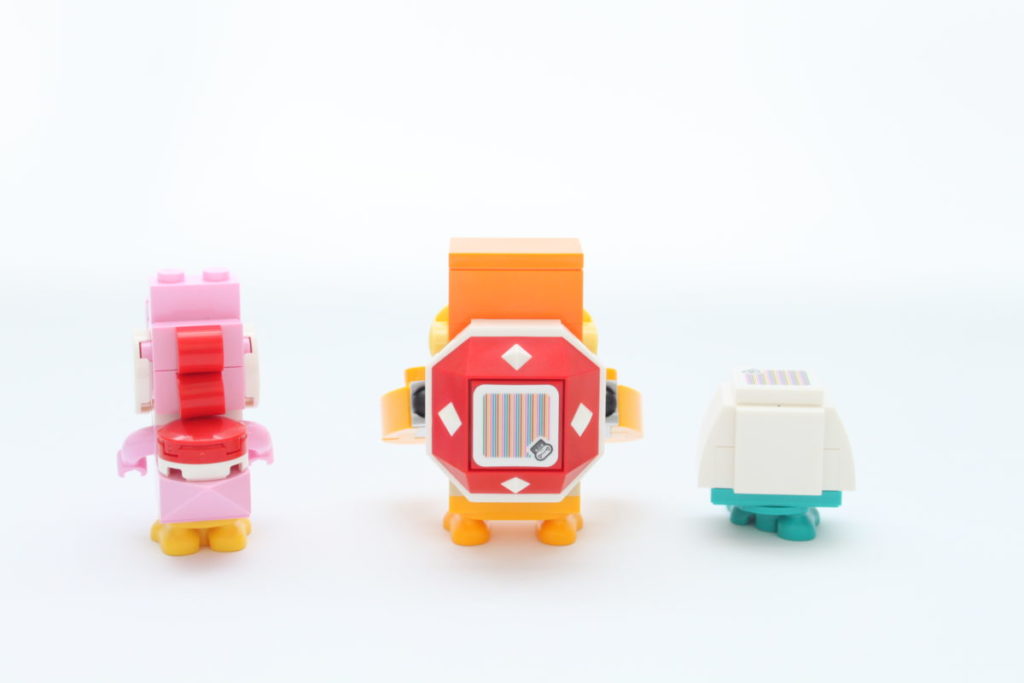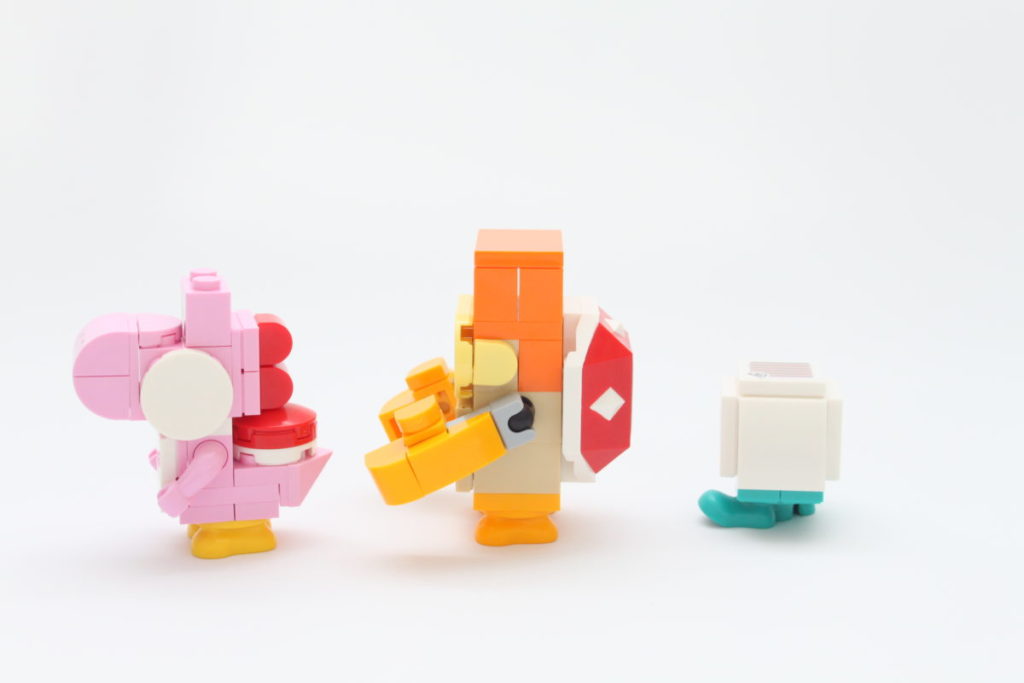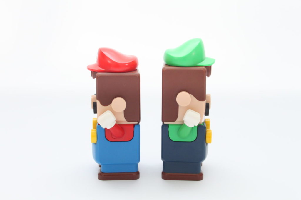 Il sottotitolo della nostra recensione sui "personaggi" non è mai stato più appropriato che nel tema di Super Mario, perché queste non sono davvero minifigure per nessuna definizione. Invece, i personaggi inclusi in 71387 Avventure con Luigi sono costruiti in mattoni o, nel caso dell'omonimo idraulico, realizzati utilizzando un elemento digitale avvolto in quella plastica familiare.
