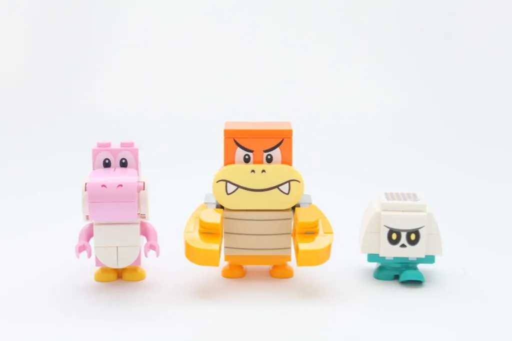 Sono inclusi anche Boom Boom, un Bone Goomba e uno Yoshi Rosa, tutti elementi che aggiungono nuove e distintive opzioni ai livelli di Super Mario. Un altro colore per la specie, apparso per la prima volta con la più familiare variante verde nel set di espansione 71367 "Mario's House & Yoshi", potrebbe sembrare un po' ripetitivo, ma chi non ha ancora acquistato quel pacchetto di espansione apprezzerà senza dubbio la possibilità di avere una versione di questo iconico personaggio.