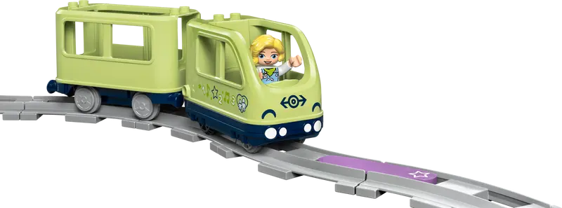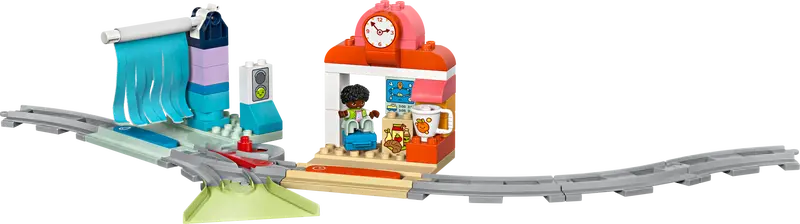 Ora arriva un calo di prezzo piuttosto significativo, salendo a £ 69.99 / $ 79.99 / € 79.99 per 10427 Treno interattivo d'avventuraLe immagini dello stile di vita mostrano questo ciclo chiuso di DOPPIO binari del treno, insieme a un treno verde, vari personaggi e accessori come alberi e un edificio per rallegrare il paesaggio del treno.