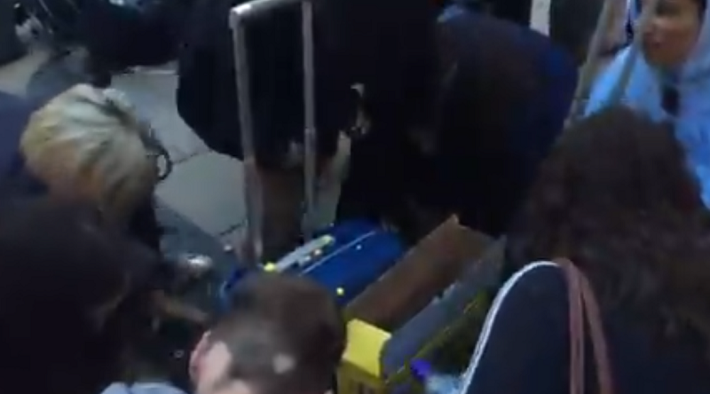 I passanti aiutano il viaggiatore con il disastro LEGO alla stazione di Euston