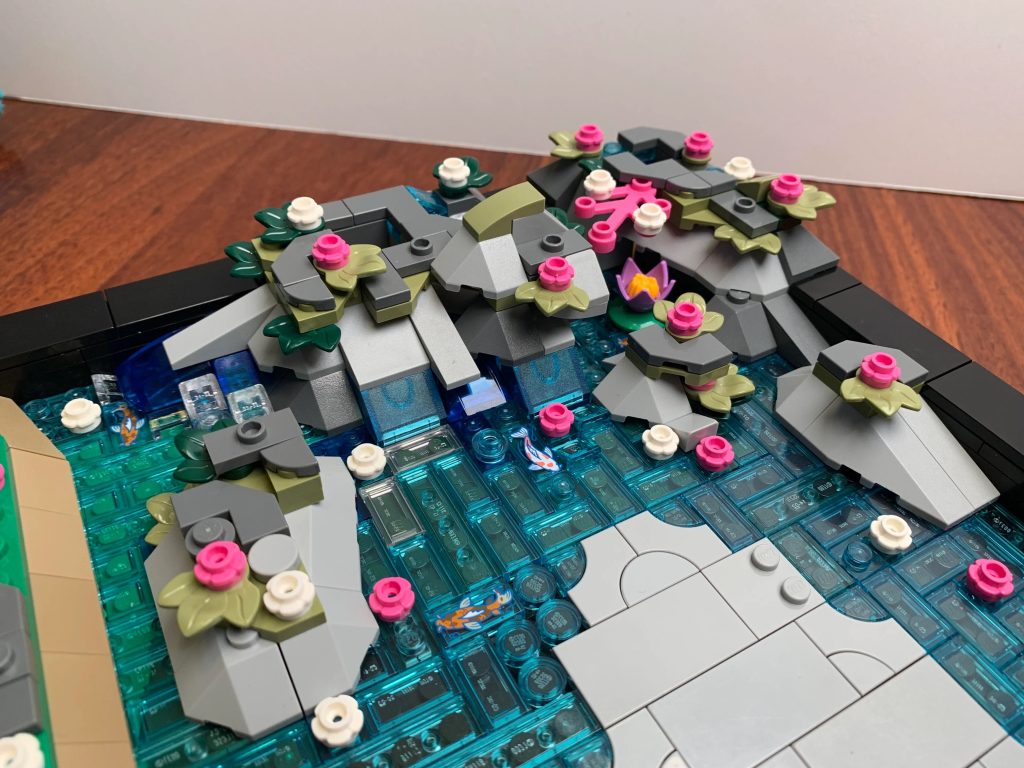 utente reddit reise_nodo condiviso alcune foto della propria creazione, combinandole 10315 Giardino Tranquillo con LEGO NINJAGO 71819 Santuario di Pietra del Drago. La cascata e l'albero di ciliegio in fiore dal LEGO NINJAGO il set si fonde perfettamente con il giardino Zen, mentre la base nera del 10315 Giardino Tranquillo fornisce uno strato robusto per tenere tutto insieme.